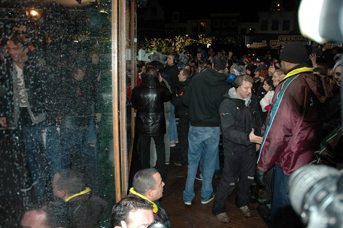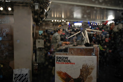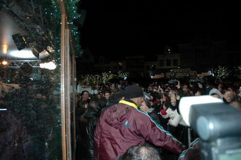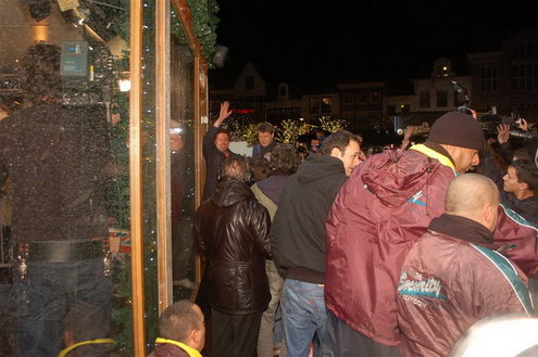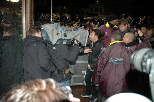 Zo, die zit dicht. Gary Lightbody, zanger van Snow Patrol, voelde nog even goed aan de deur van het Glazen Huis, maar daar zat echt geen beweging meer in. De zanger mocht even daarvoor in het Glazen Huis raden welk liedje van zijn band nu al het meest aangevraagd was voor de Serious Request actie. Het bleek 'Called out in the dark' te zijn. Een verzoekje dat ruim 11.000 euro opbracht. Aansluitend gaf Snow Patrol voor enkele duizenden mensen een optreden op het podium op de Beestenmarkt.(Foto's: Chris de Waard en Emile van Aelst / www.leidseglibber.nl).