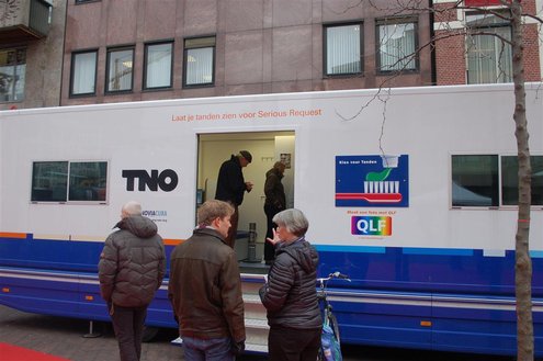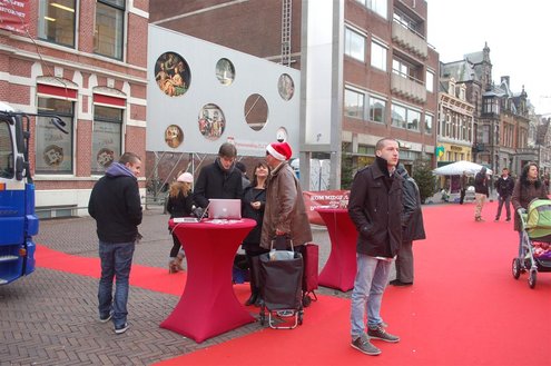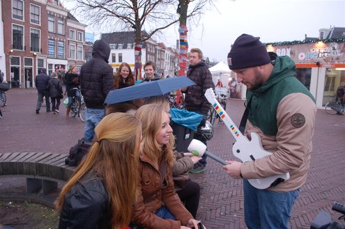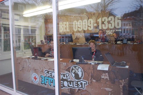 Gisteravond gaf K & G een lekker stukje muziek weg op de Beestenmarkt, waar zowel het aanwezige publiek als de bemanning van het Glazen Huis van genoten. Rond 20.00 uur overhandigde K & G trots een cheque van € 5500,- aan Serious Request. Ook de winkeliersvereniging overhandigde de opbrengst van hun speciale acties. Ondanks de hagel, regen en kou, blijven de Leidenaren trouw aan het Glazen Huis gekluisterd en aan van alles wat er omheen te doen is voor de ‘Moeders in Oorlogsgebieden’. Emile van Aelst maakte een impressie van gisteren.