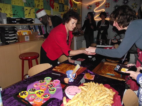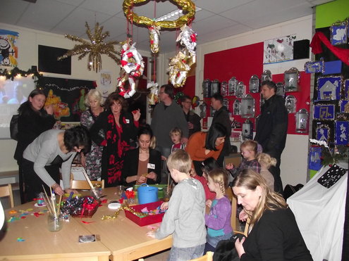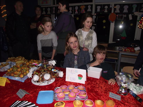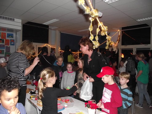 Vanavond werd een gezellige Kerstmarkt gehouden in basisschool de Tweemaster, in de Leidse Merenwijk. Alle kinderen, leerkrachten en de ouders hadden hun best gedaan en dat was te zien! Naast de vele hapjes en drankjes waren er ook allerlei eigengemaakte kleine kunstwerkjes, kerststukjes en kaarsen te koop en werd er veel muziek gemaakt en gezongen. Daarna ging de pet rond, in dit geval de Kerstmuts. De opbrengst van de Kerstmarkt gaat naar het Glazen Huis. (Foto’s: Jacqueline Borg)
