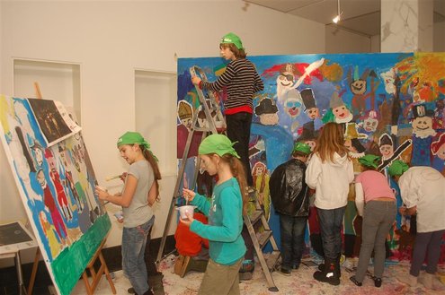 In de hal van het stadhuis schilderden kinderen ‘de Dagwacht’ en tussendoor maakte Emile van Aelst wat foto’s van de ijsbaan en de Kerstmarkt. Ook ’s avonds stond het plein weer vol en was ‘ons nationaal blondje’ Britt op bezoek in het Glazen Huis.
