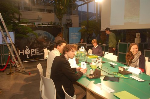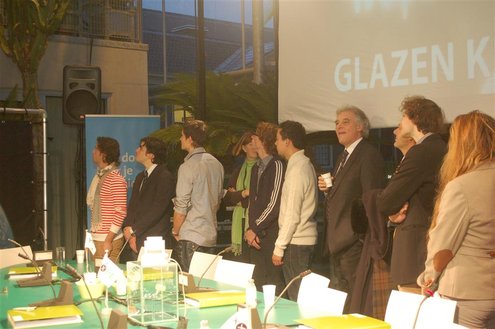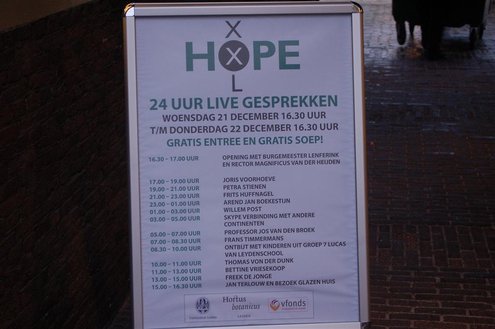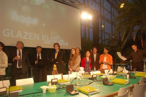 Burgemeester Lenferink en de rector magnificus sloten de Glazen Kluis af in de Hortus Botanicus, waar studenten 24 uur aan het debatteren sloegen over het onderwerp ‘vrede’ met allerlei prominenten, zoals Joris Voorhoeve, Freek de Jonge, Jan Terlouw, Bettine Vriesekoop en Willem Post.