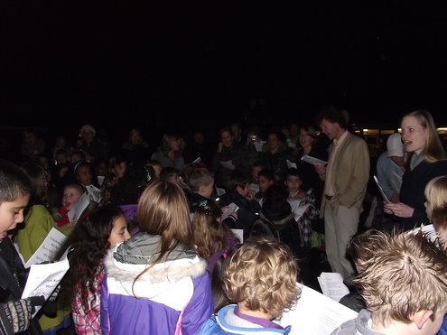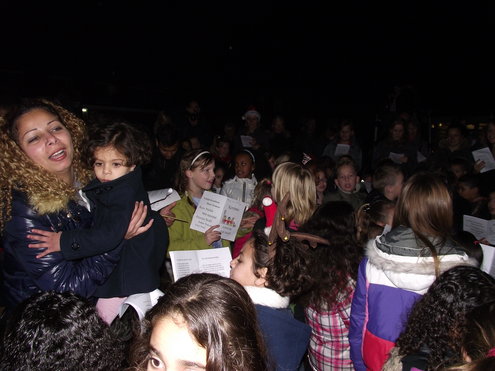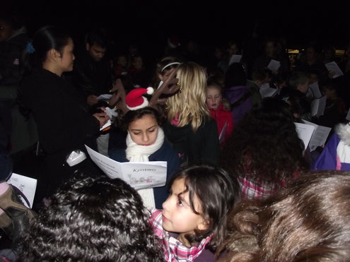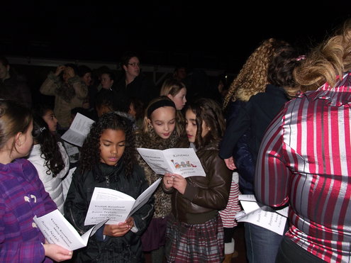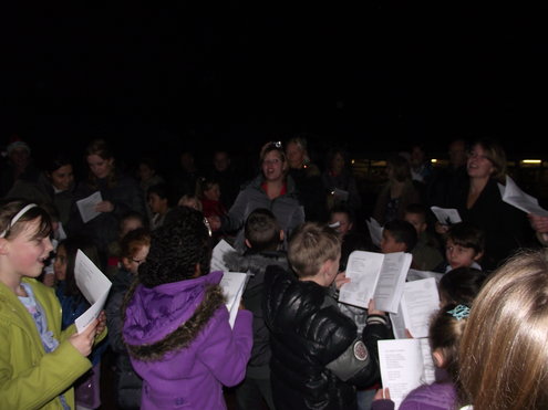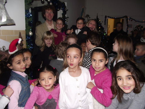 Een aantal leerlingen van groep 4 van de Pacelli School, in de Leids Mors, heeft met leuk versierde cupcakes € 150 bij elkaar gebracht. De kinderen verkochten de eigen gemaakte cakejes onder andere op het Diamantplein. Vanmiddag overhandigden ze vol trots de cheque bij het Glazen Huis. Gisteravond, na de Kerstzang op het schoolplein, met aansluitend een gezellig Kerstdiner in de klas, poseerde groep 4, samen met juf Joyce en meester Patrick even in de hal van de school. (Foto’s: Jacqueline Borg)
