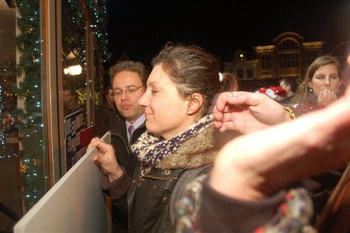 Emile van Aelst ging voor Sleutelstad.nl weer met zijn camera op pad, om de gebeurtenissen rond het Glazen Huis vast te leggen. Gisteren zong dameskoor ‘Er Welt een Traan’ haar welbekende smartlappen op betaald verzoek bij cafe L’Esperance. Leidse raadsleden boden een cheque van € 6000,- aan bij het Glazenhuis, bijeen gebracht door de kunstveiling en een twitteractie. Morgen ishet ‘circus’ afgelopen en wordt de eindstand bekend gemaakt. Morgenavond wordt het evenement spetterend afgesloten door een eindfeest met onder andere dj Armin van Buuren bij Molen de Valk.
