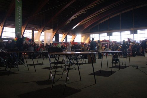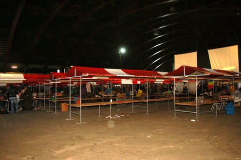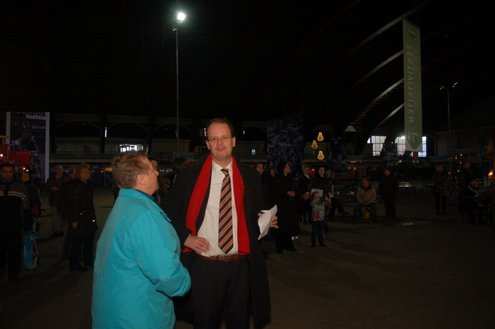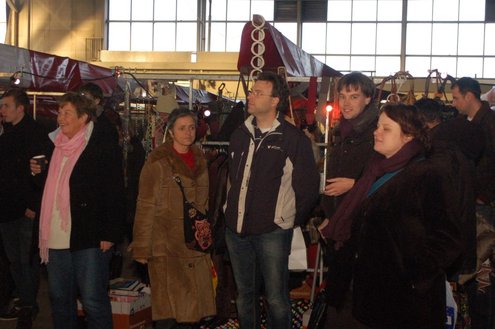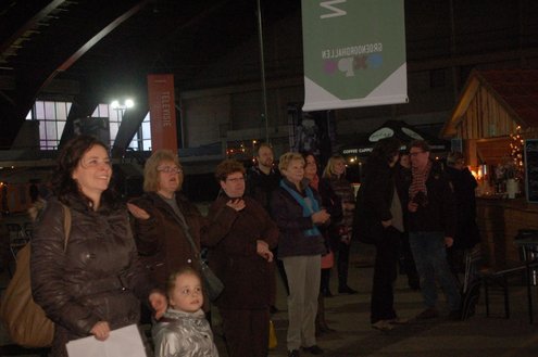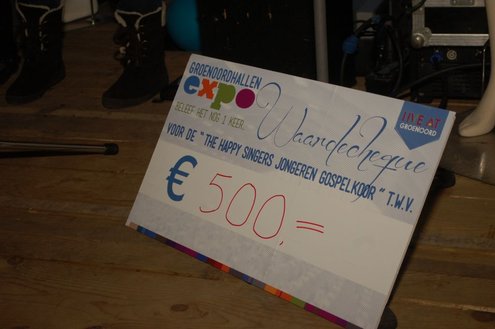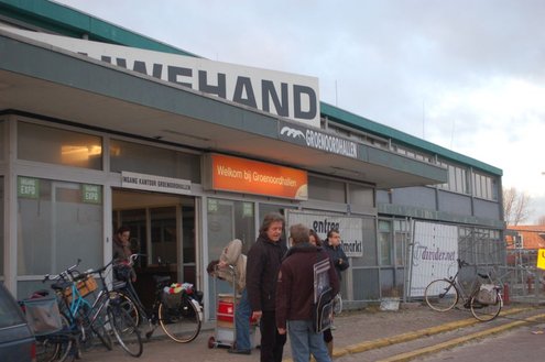 Gistermiddag vond de laatste snuffelmarkt plaats in de Groenoordhallen. Doordat de hal niet meer onderverdeeld was in verschillende afdelingen, leek het een zee van ruimte waar zowel de expositie als de markt stonden opgesteld. De toegang was gratis en veel Leidenaren maakten van de gelegenheid gebruik om nog een laatste keer naar de hallen te komen. Langs de kramen en de kleedjes op de vloer was het dringen geblazen en onder gezellige muziek van groepen, die ooit optraden op deze legendarische plek, genoten de bezoekers van een kopje snert of een glaasje glühwein. Rond 13.00 uur werd de Groenoord- expo afgesloten en gingen de grote fotodoeken onder de hamer. Wethouder Pieter van Woensel reikte de opbrengst, een cheque van € 500, uit aan Jongeren gospelkoor The Happy Singers. Daarna gingen de deuren definitief dicht!