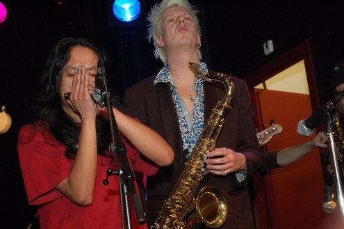Als afsluiter van de avond liet Flo nog even horen hoe geweldig mondharmonica hij kan spelen. Bij heel wat concerten in Hunky Dory kwam hij spontaan even achter de bar vandaan om een stukje mee te spelen.