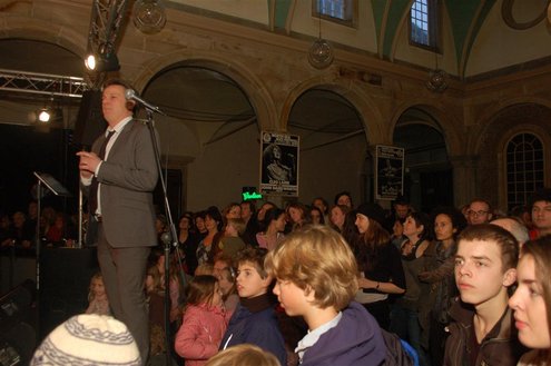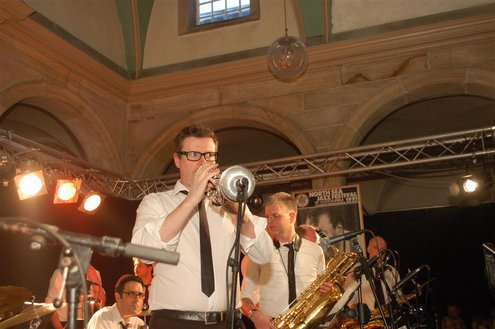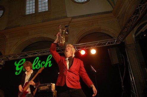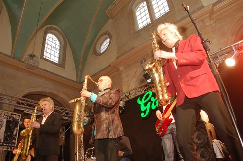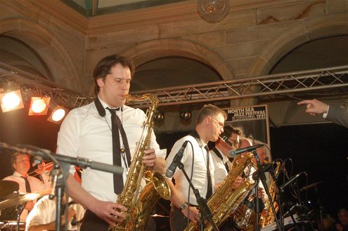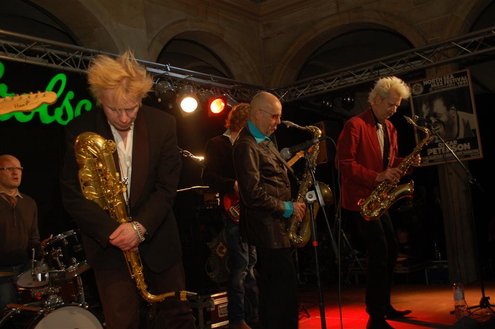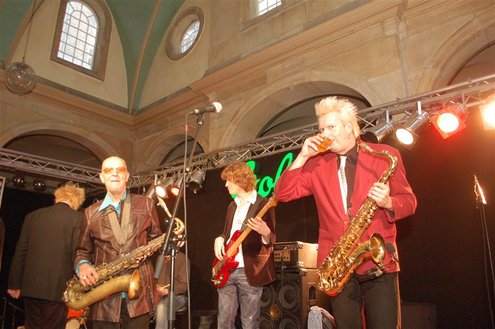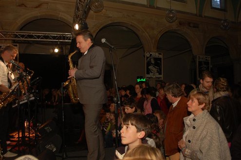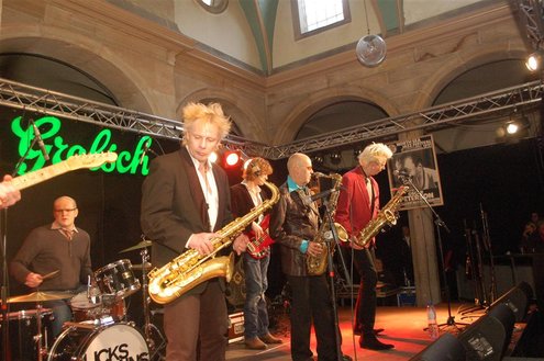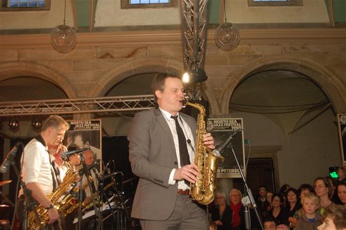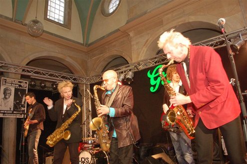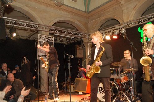 Gistermiddag vond voor de 50e én laatste maal de traditionele Tenorbattle plaats in de Waag als spetterende afsluiting van de Leidse Jazzweek. Organisator Leidse Harry stopt ermee, omdat het steeds moeilijker wordt om de battles financieel rond te krijgen. Saxofonisten van het eerste uur Rinus Groeneveld, Boris van der Lek en Wouter Kiers gingen het muzikale gevcht aan met als begeleidingsband Blood Sweat & Kiers. Als knallende afsluiting trad ‘Licks & Brains’ op met onder andere Lodewijk van Gorp als gast. (Foto’s: Emile van Aelst)