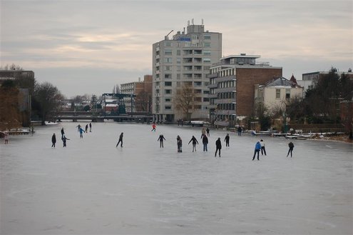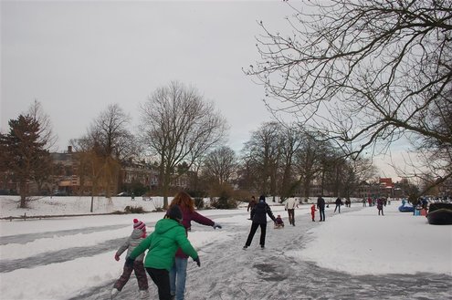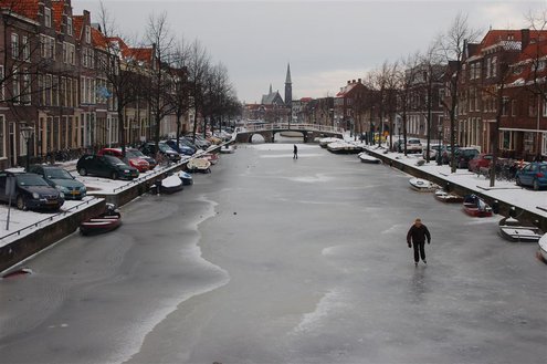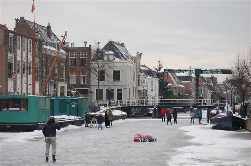 De strenge vorst zorgt voor veel overlast, maar er zitten ook hele leuke kanten aan. Grote en kleine schaatsliefhebbers genoten vandaag van het natuurijs, op de ijsbanen en op de vele vijvers en watertjes in de buitenwijken, zoals in de Merenwijk, de Stevenshof en het Morskwartier. Ook in de Leidse binnenstad werd zo hier en daar flink geschaatst, hoewel het op allerlei plaatsen bij bruggen en wakken oppassen geblazen is. Vooral door de laag sneeuw is de veiligheid van het ijs moeilijk in te schatten. Het is dan ook nog lang niet zeker of de Elfstegentocht, die volgende week gepland staat, doorgang kan vinden. Emile van Aelst maakte een ijskoud fotorondje door het centrum en langs de singels en legde de schoonheid van de verstilde Leidse wateren vast.