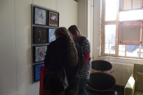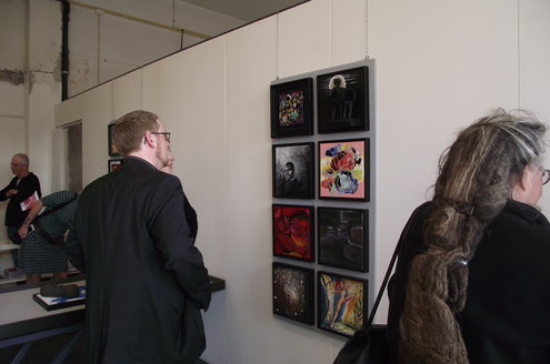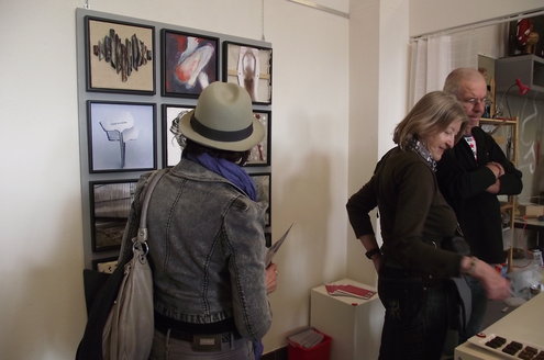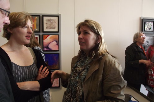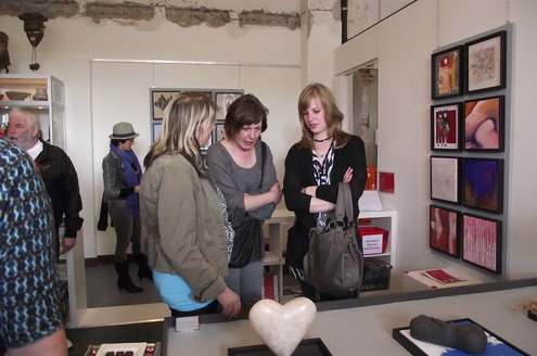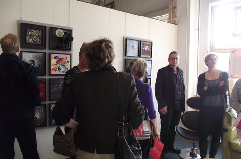 Gisteren werd de nieuwste expositie van zo’n 60 Leidse kunstenaars geopend in galerie Diana Lepelaar. Onder de titel ‘Love is in the air’ zijn op grote panelen in totaal 60 kleine kunstwerkjes in verschillende disciplines samengevoegd tot een soort staalkaarten van hedendaagse kunst. De belangstelling was groot en bezoekers lieten zich ook de kunstwerkjes van Chocolaterie-Atelier Alexandre goed smaken. Alexandre gaf uitleg over de herkomst van zijn ingrediënten en het publiek proefde enthousiast de verschillende smaken. De expositie is vandaag en morgen te bezoeken en op afspraak. Meer info: www.galeriedianalepelaar.nl Haagweg 4 – E16, 2311 AA, Leiden. (Foto’s: Jacqueline Borg)