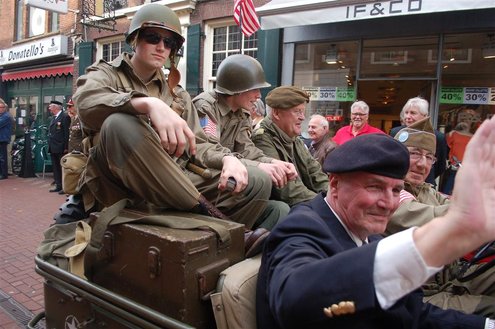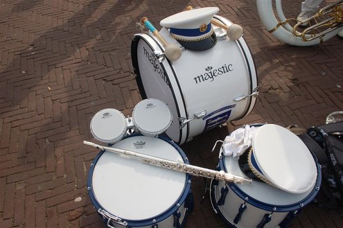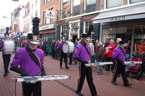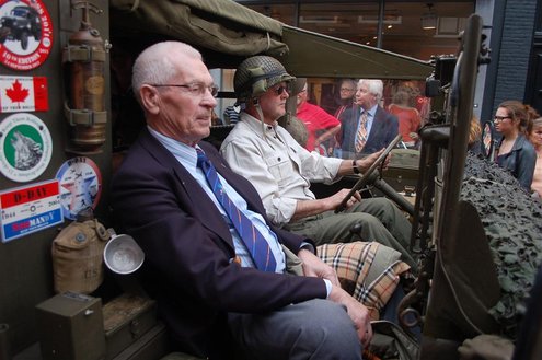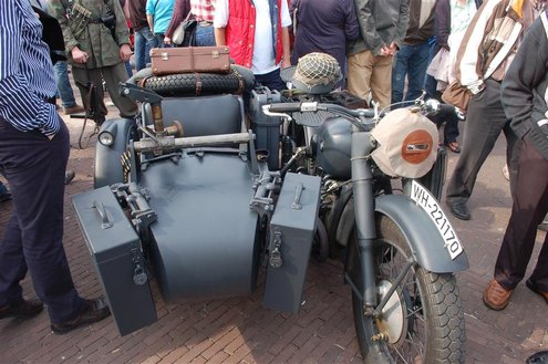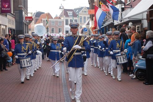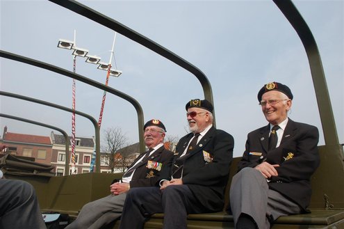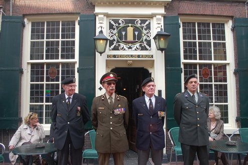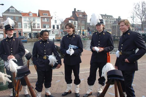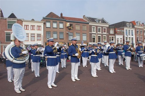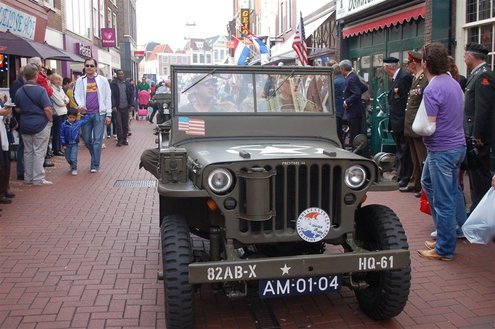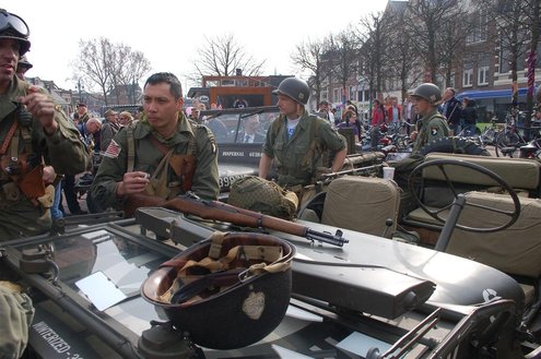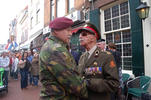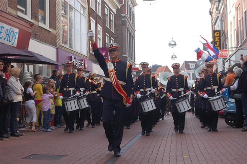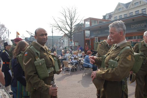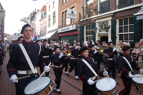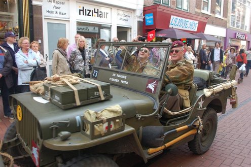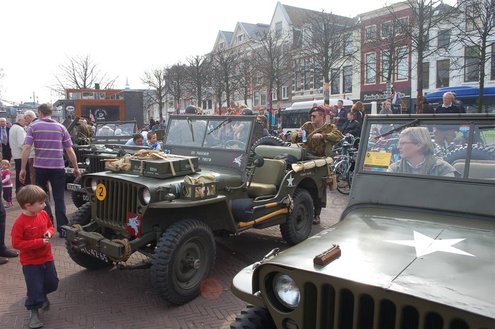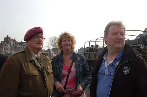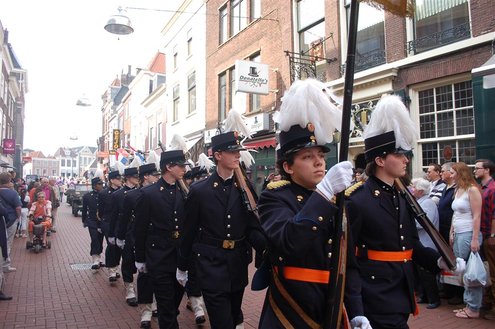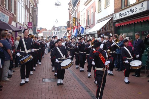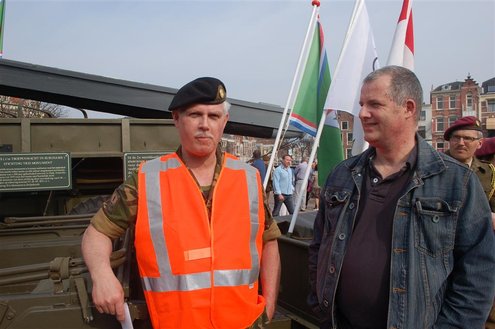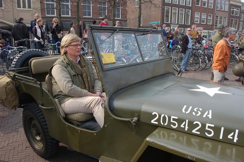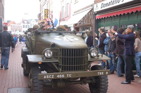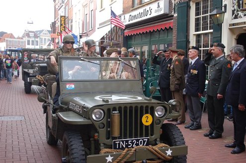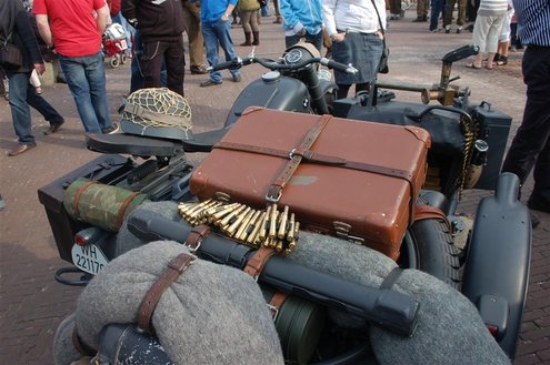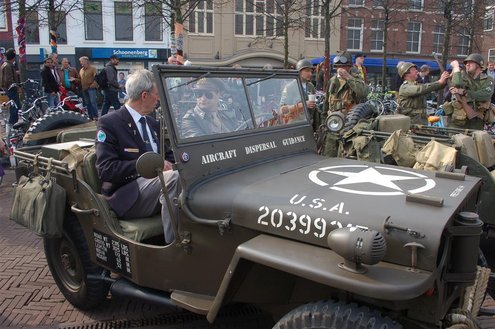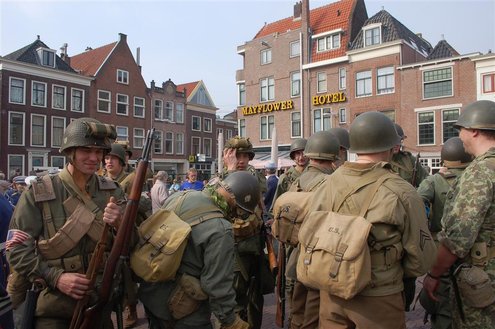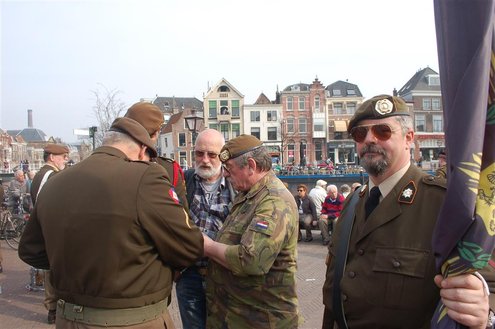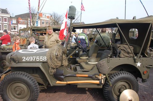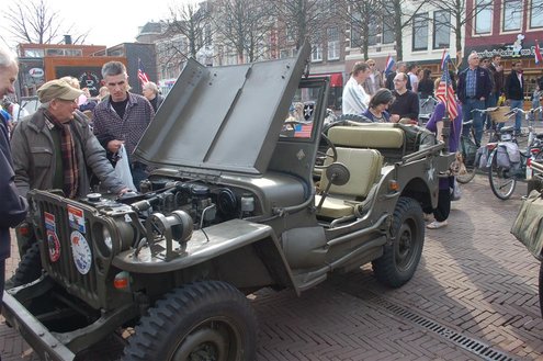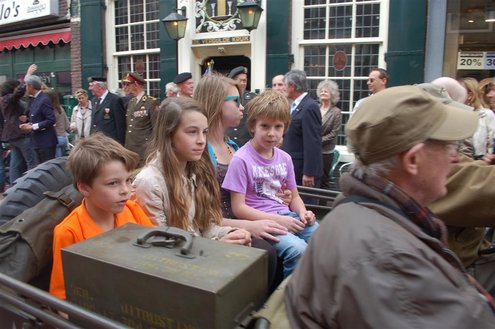 De Band of Liberation paradeerde in het kader van de ‘Military History Day 2012’ gistermiddag door een zonovergoten Leidse binnenstad. De stoet met diverse bands, motoren en oude legervoertuigen bracht een ode aan “onze bevrijders” van de Tweede Wereldoorlog. Op het plein bij de Hooglandse Kerk vond een grote ‘militariabeurs’ plaats en de dag werd in de kerk afgesloten met een indrukwekkend concert met medewerking van Big Band Hans Dubbelaar en de Band of Liberation en zang van Rebecca Robinson. (Foto’s: Emile van Aelst.)