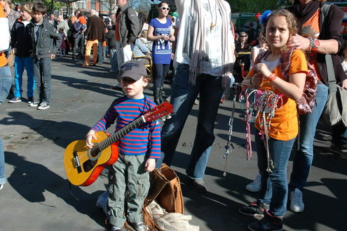 Chris de Waard stond vanmorgen vroeg op en maakte met recorder en microfoon een uitgebreide impressie van Koninginnedag in Leiden.