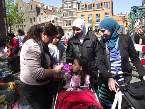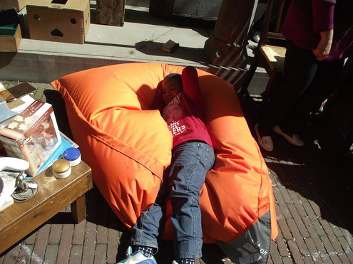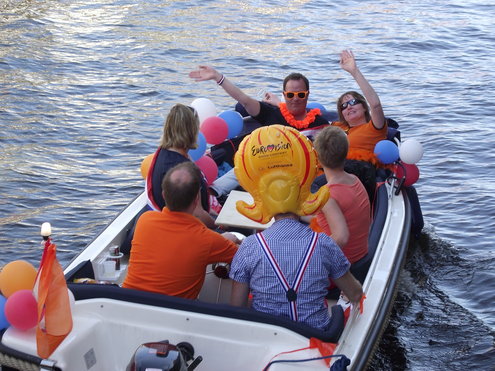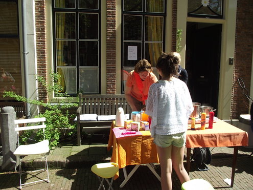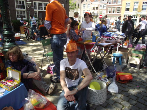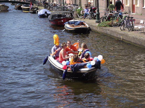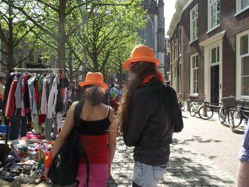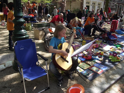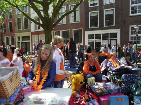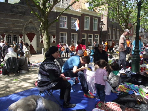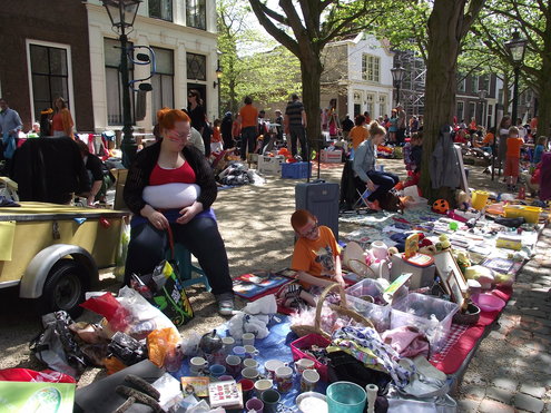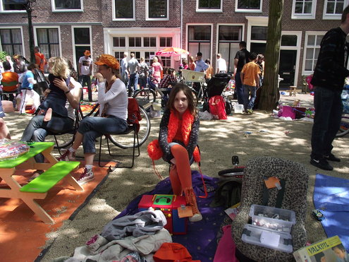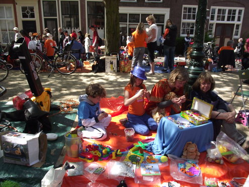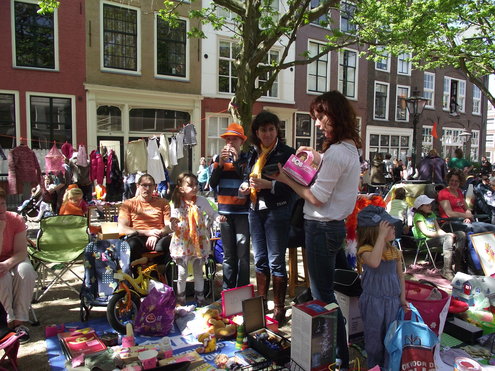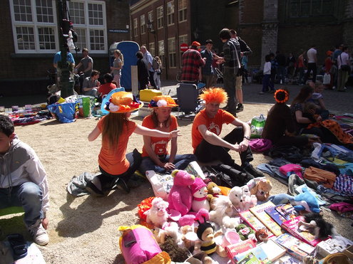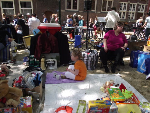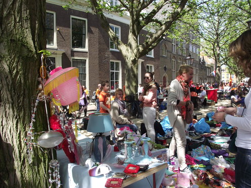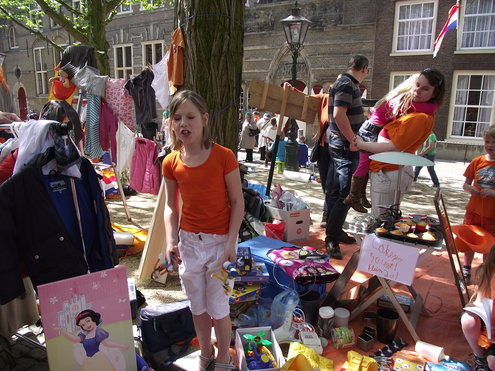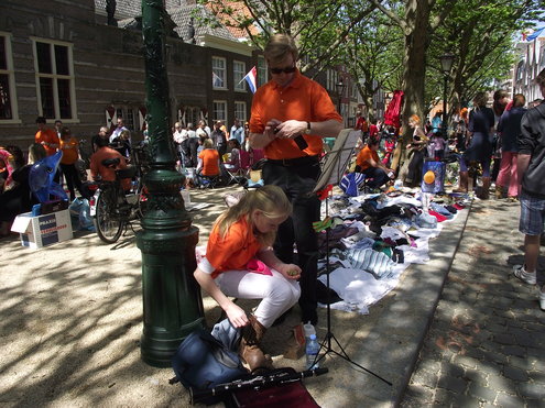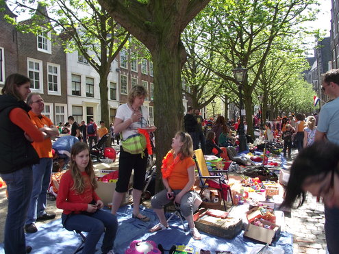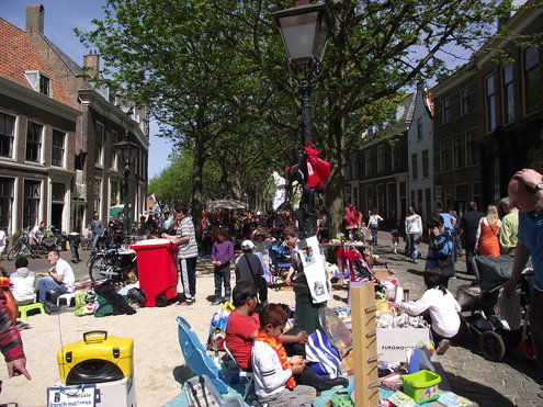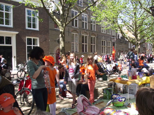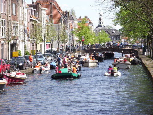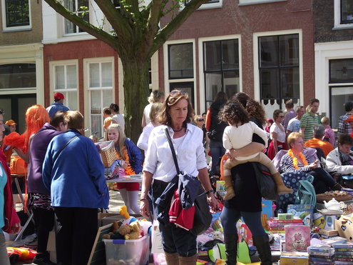 Na barre herfstweken van de afgelopen lijkt vandaag de zomer losgebarsten boven een oranje Sleutelstad. Met de fiets, lopend of over de Leidse wateren komen mensen massaal naar de evenementen in de stad. Naast alle officiële festiviteiten spreiden Leidenaren spontaan kleedjes uit om hun overtollige spulletjes aan de man te brengen, of verkopen hapjes en drankjes aan het langstrekkende publiek. Op de Hooglandse Kerkgracht vindt de jaarlijkse kindervrijmarkt plaats met vooral speelgoed en musicerende kinderen. De terrassen zijn afgeladen met oranje gasten en op het water varen bootjes af en aan met passagiers die vaak al flink aan het bier of de rosé zijn. Kijk voor het volledige feestprogramma op www.leiden.nl (Foto’s: Jacqueline Borg.)