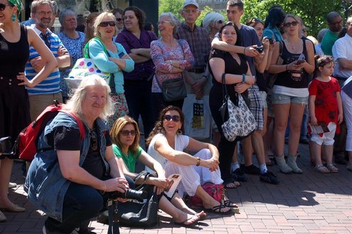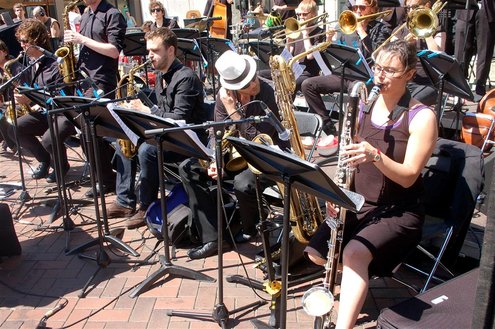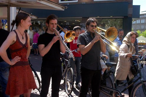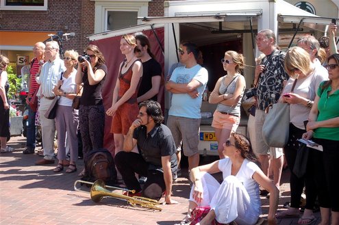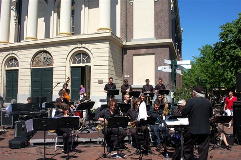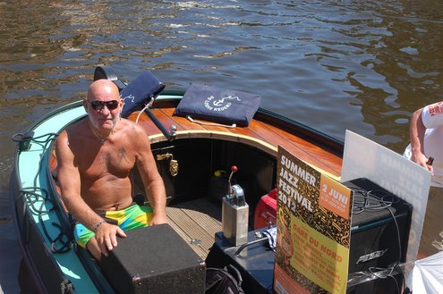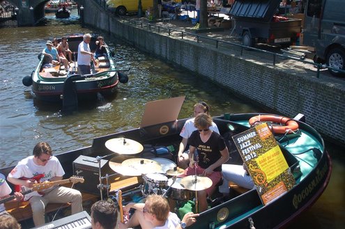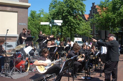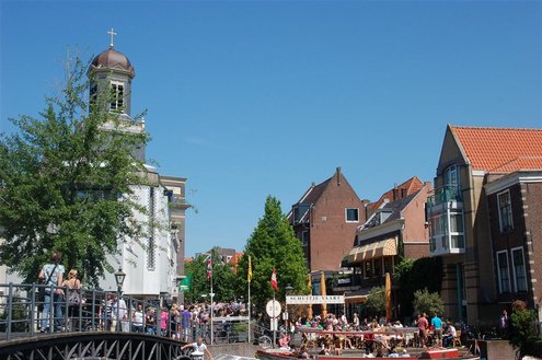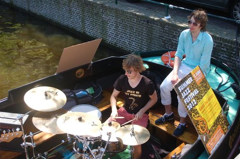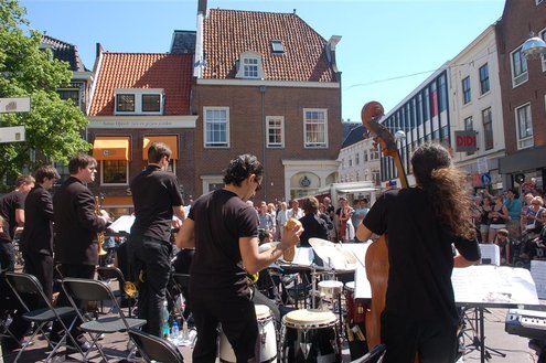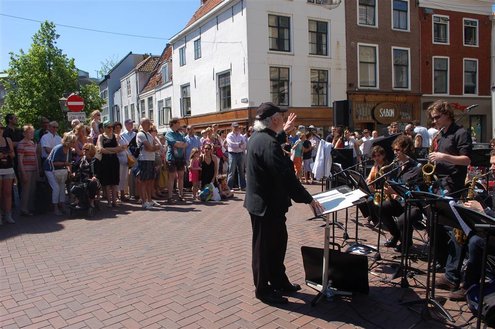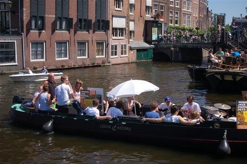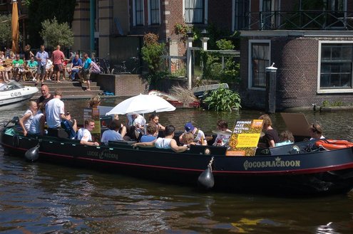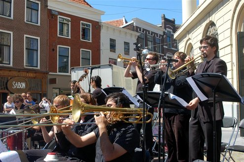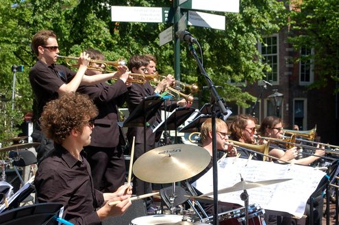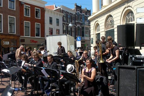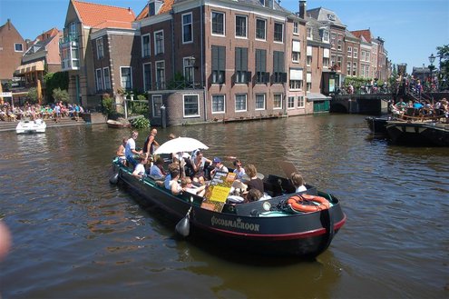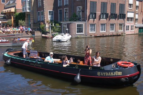 Gisteren gonsde de Sleutelstad van muziek, mode en cultuur. De Big Band van het Amsterdams Conservatorium leidde het CuMLaude festival in, Summerjazz maakte varende muzikale reclame en in het stadshart vond de afsluiting plaats van het ‘Fashion Event Leiden’ met diverse optredens en modeshows. Ook werd gisteren de ‘Nacht van de Fooi’ gehouden met onder andere een ‘mannenveiling’ in Odessa en allerlei optredens van veelbelovende jonge bandjes op de Beestenmarkt, afgesloten door een swingende afterparty in InCasa. De opbrengst gaat naar ontwikkelingsprojecten. Voor wie de stad boven het strand verkoos was er gisteren veel te zien en te beleven in een ‘tropische’ binnenstad met afgeladen terrassen en een ware file van boten en bootjes. (Foto’s: Emile van Aelst.)