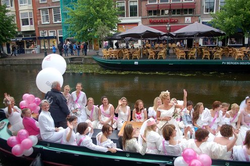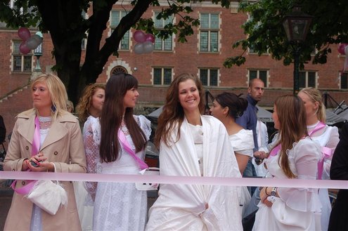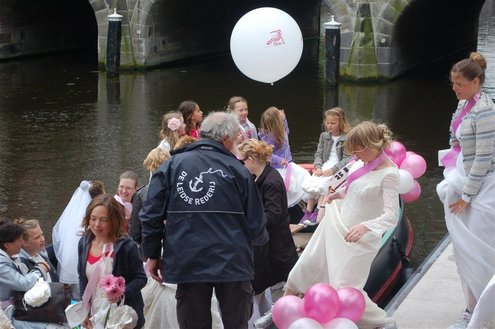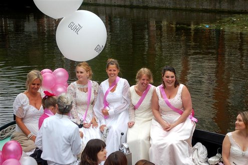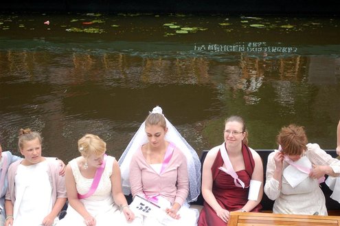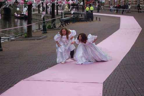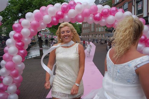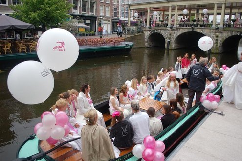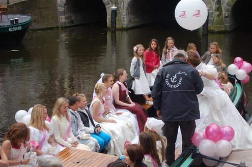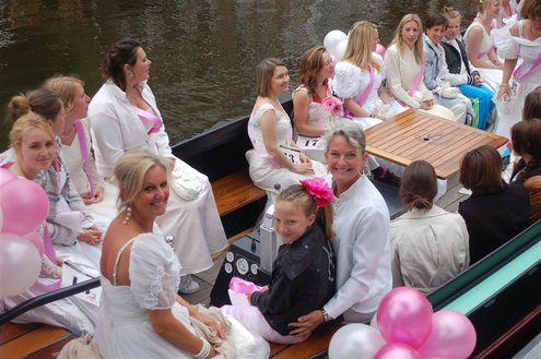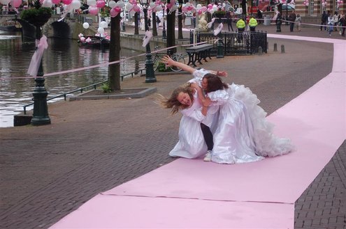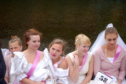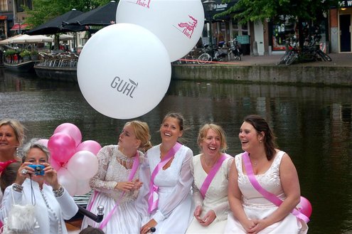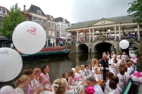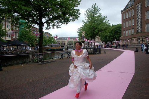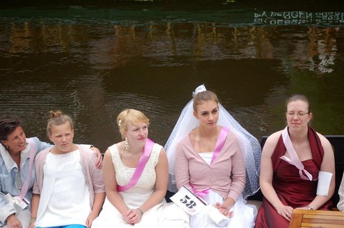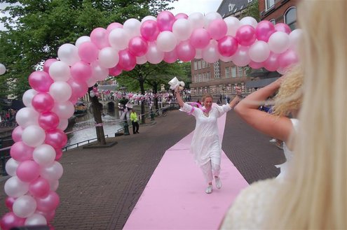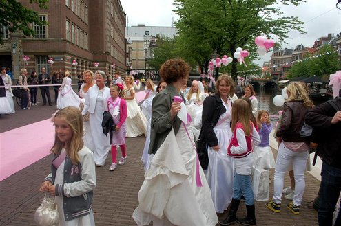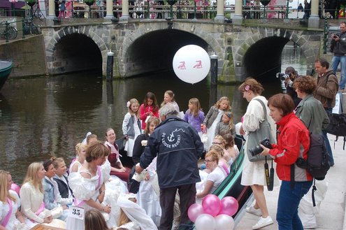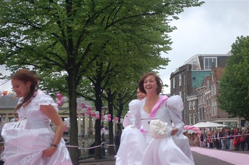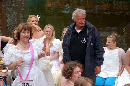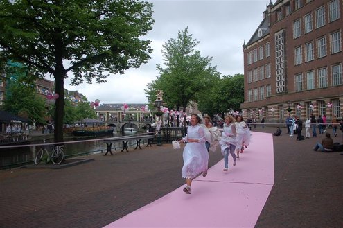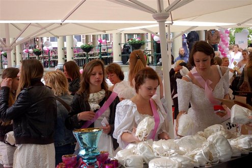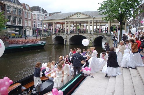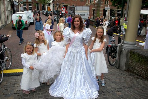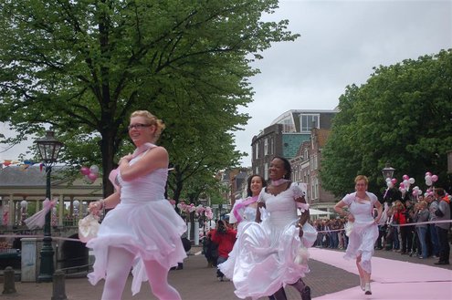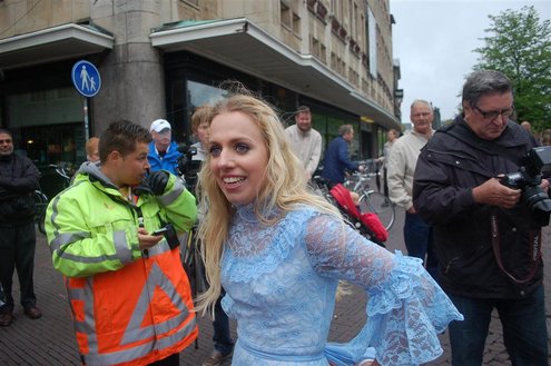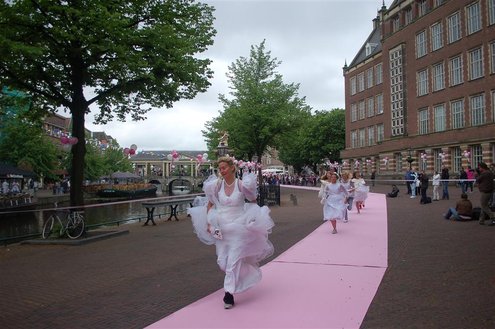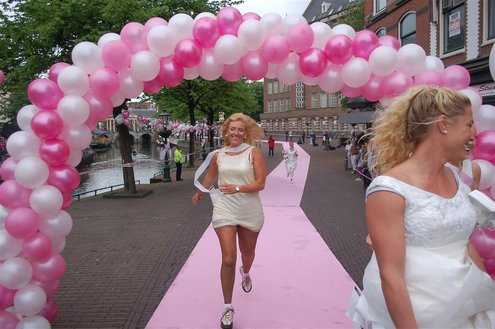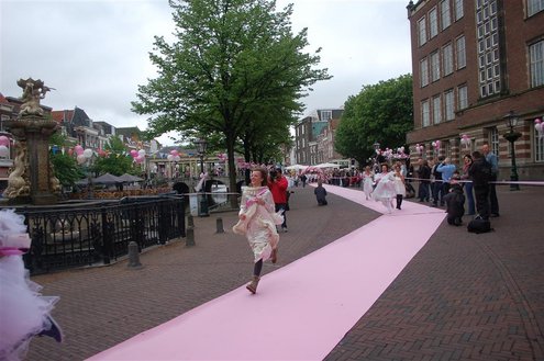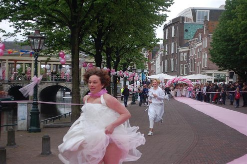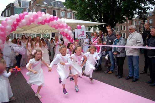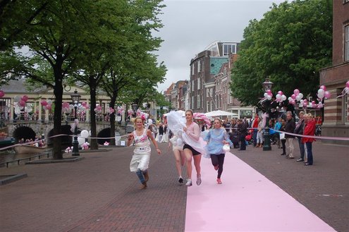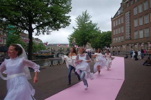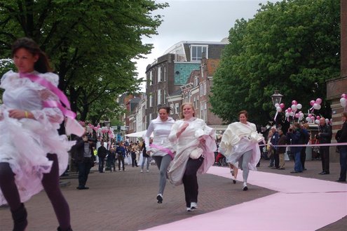 Vanmiddag vond voor de tweede maal de ‘Flair Running Bride’ plaats op het Stadhuisplein. Bruiden in hun mooiste jurken renden de benen uit het lijf om één van de aantrekkelijke prijzen in de wacht te slepen, zoals een volledig verzorgde huwelijksreis naar de zon, een Gucci-sieradenset en een trouwjurk naar keuze. Dit laatste lijkt wat vreemd, tenzij er gesprint werd in een geleend exemplaar. De meeste bruiden hadden de traditionele hoge hakken verruild voor een paar sportschoenen. De snelste bruid was Rianne Klein Brinke. Alle deelneemsters ontvingen een rijkelijk gevulde ‘goodiebag’ en na afloop stonden de champagne en natuurlijk een heuse bruidstaart klaar. Emile van Aelst was erbij en maakte een fotoverslag.