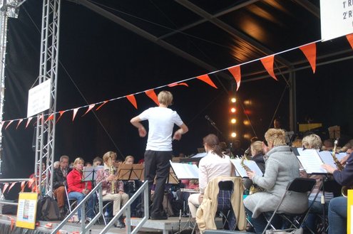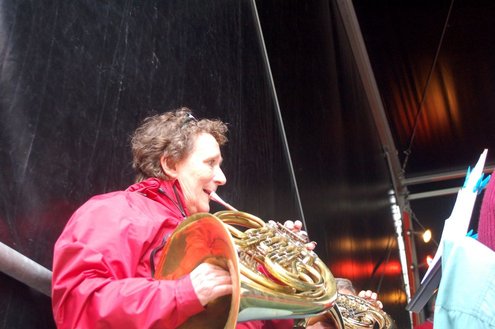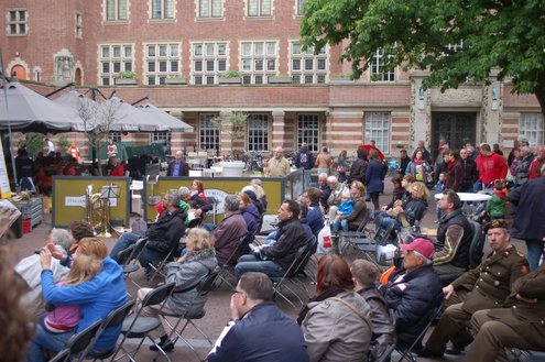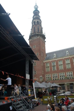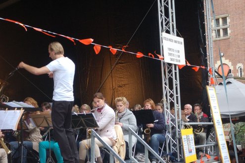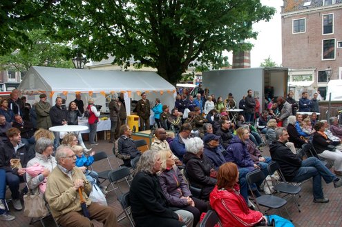Met de (winter)jas aan en de paraplu in de aanslag werd er gistermiddag meegespeeld en meegeluisterd met een afwisselende Leidse Muziek Play Inn (LMPI), die voor de 12e keer werd gehouden. Allerlei mensen, die een blaas- of slaginstrument bespelen, hadden twee oefensessies meegedaan en gaven ‘s middags een fantastisch concert op het Stadhuisplein. (Foto’s: Emile van Aelst.)
