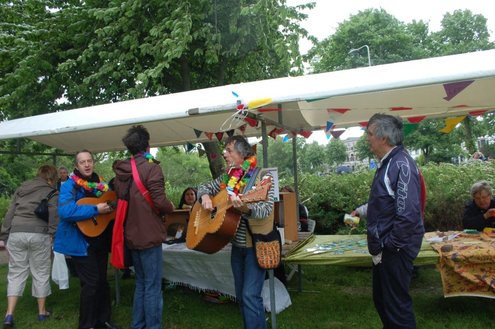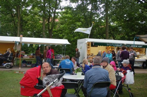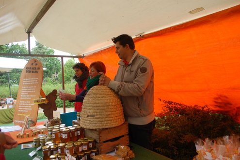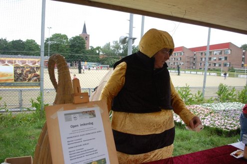 Gisteren werd traditiegetrouw een gezellige én leerzame bijenmarkt gehouden langs de Zoeterwoudse Singel. Het leek wel herfst, maar dat was geen reden om thuis te blijven. Naast imkers uit Leiden en omgeving, die hun werk en producten presenteerden, waren er diverse stalletjes opgesteld van natuur- en milieuorganisaties en ambachten zoals mandenmakers, kaarsenmakers en pottenbakkers. De kinderen vermaakten zich uitstekend en vrolijke muziek begeleidde de bezoekers langs een keur van kramen. (Foto’s: Emile van Aelst)
