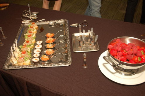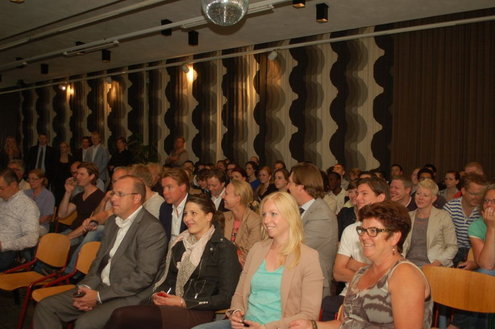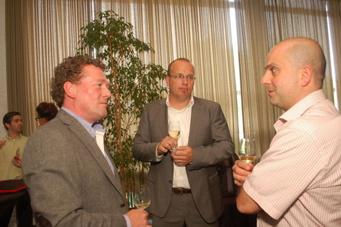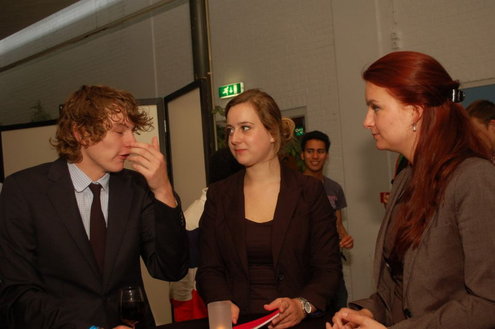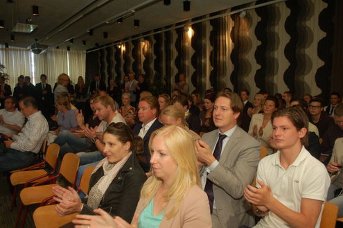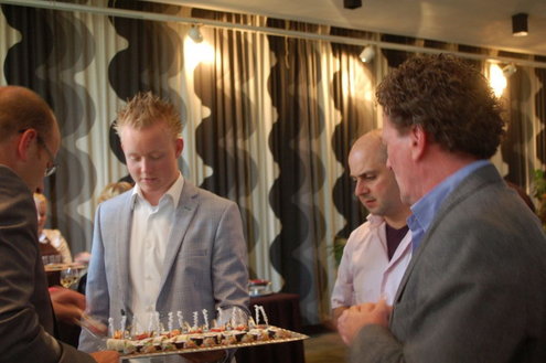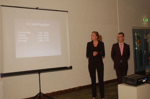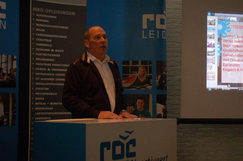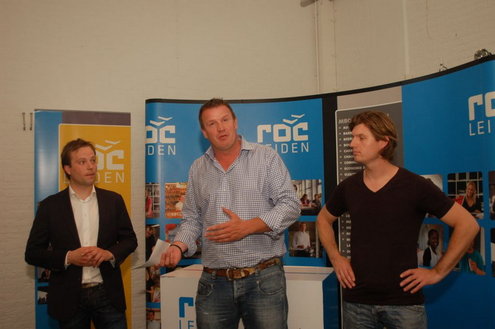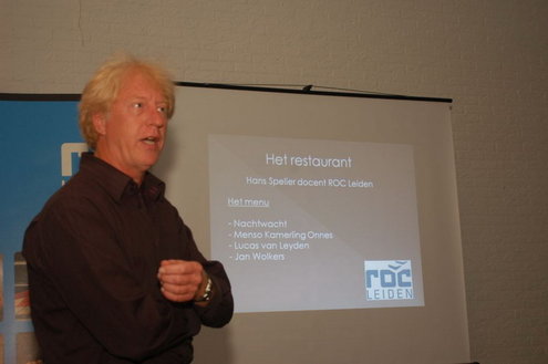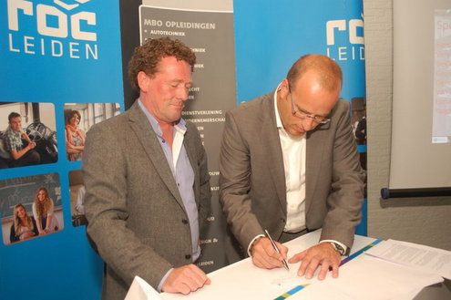 Een officieel moment gistermiddag tijdens de presentatie van Leiden Culinair bij de horeca-opleiding van het ROC in Leiderdorp. Voorzitter Rob van Marwijk tekent een sponsorovereenkomst met Mark Elkerbout van SCC dat heeftsponsor is geworden van het culinaire festival. (Foto's: Emile van Aelst).