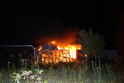 In de nacht van zondag op maandag heeft er in Oegstgeest een grote brand gewoed in een leegstaande schuur annex kassencomplex. De brand, die omstreeks 12.20 uur uitbrak, heeft kort maar hevig geduurd. Ongeveer 100 m2 van de 400 m2 is afgebrand. Al snel werd duidelijk dat er asbest was vrijgekomen bij de brand.