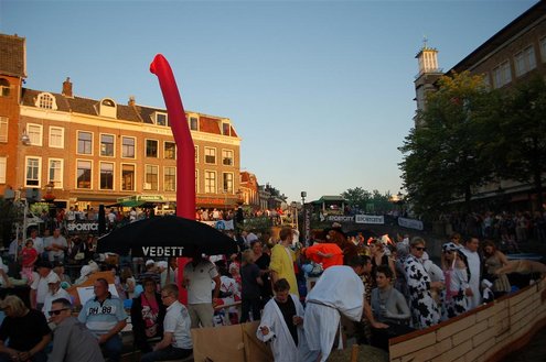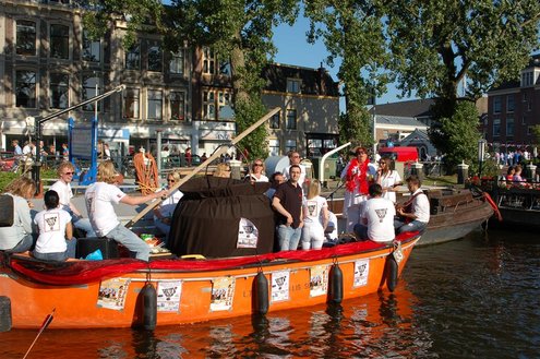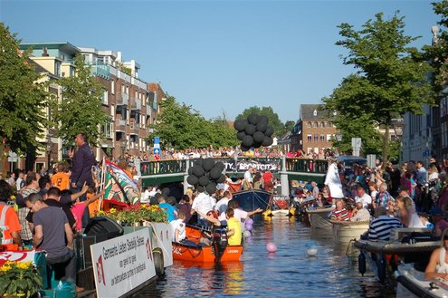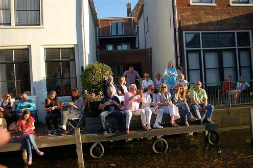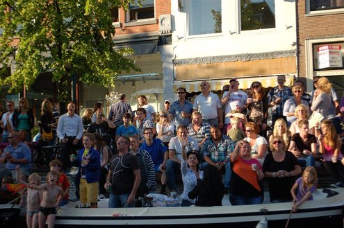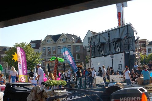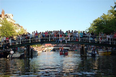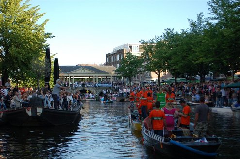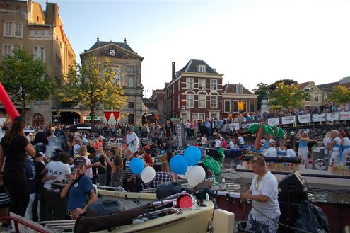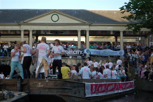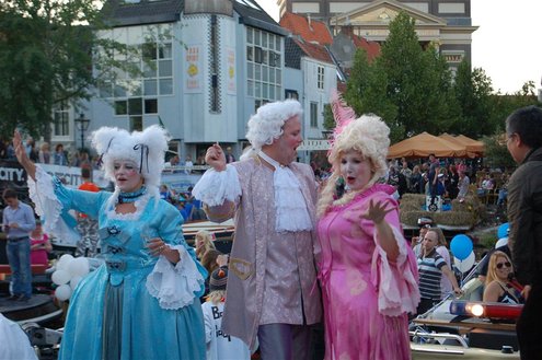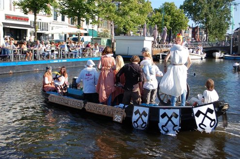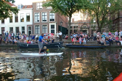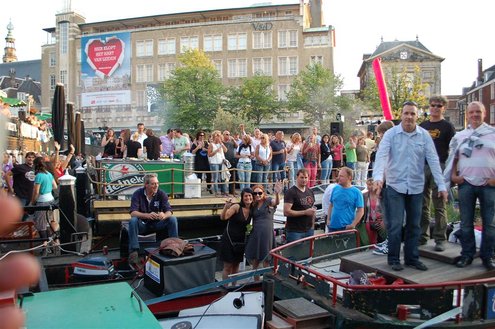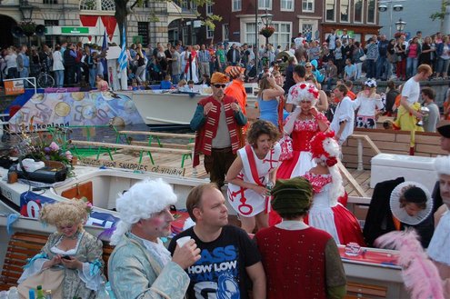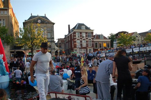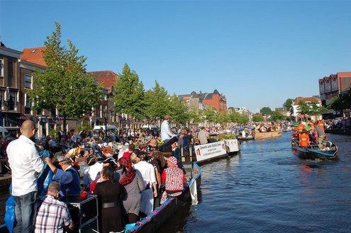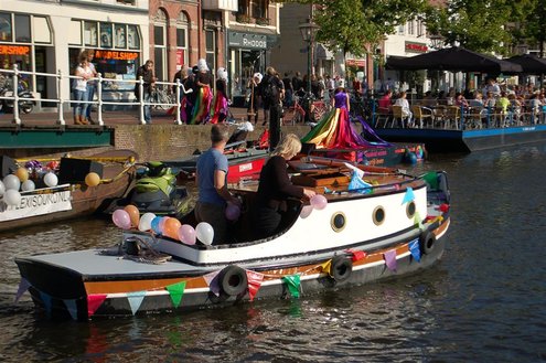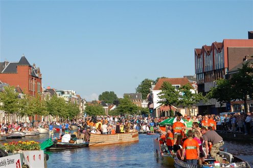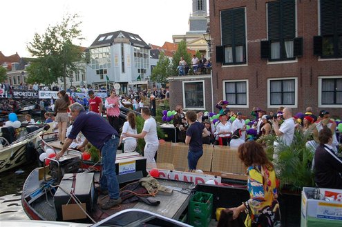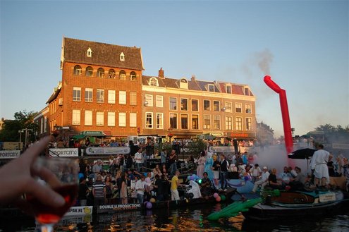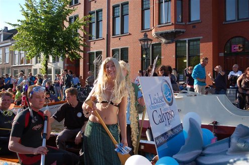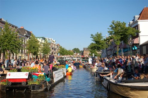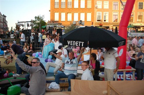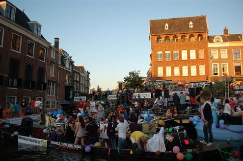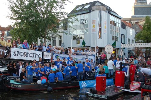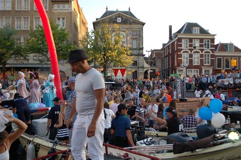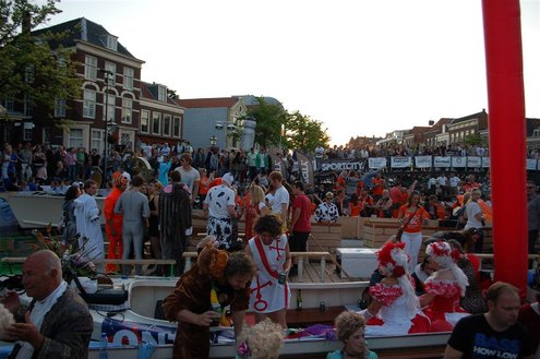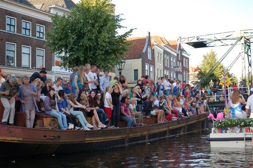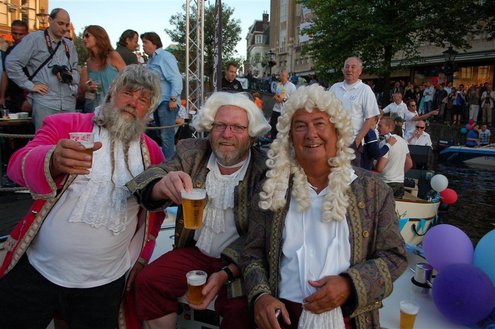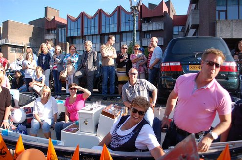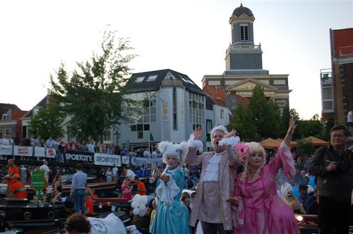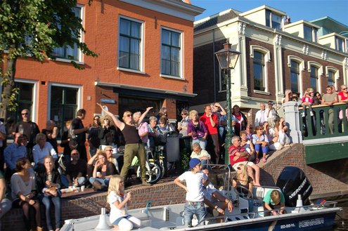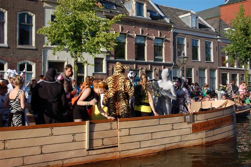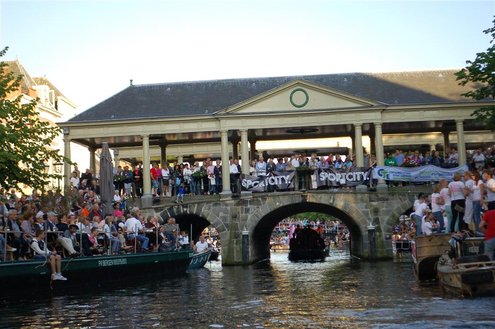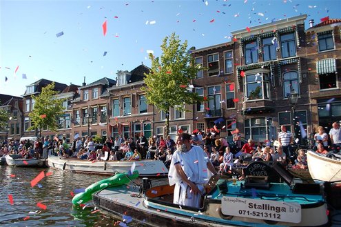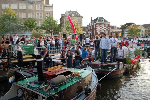 Gisteravond keken duizenden toeschouwers naar de Peurbakkentocht, een daverende aftrap van de Leidse Lakenfeesten 2012. Het weer hield zich fantastisch en zo konden Leidenaren en veel mensen van buiten de Sleutelstad genieten van een prachtig spektakel. Centrummanager Erwin Roodhart praatte de fleurige wateroptocht aan elkaar en deed niet onder voor zijn illustere voorgangers als Aad van der Luit en Chris Verplancke. Café ‘De Roze Beurs’ veroverde met haar dracculaboot de eerste prijs in de categorie Bedrijven; de Voedselbank Leiden e.o. behaalde de eerste prijs met ‘de crisisvaart’ in de categorie Verenigingen en Musicalgezelschap Otis kreeg de eerste prijs in de categorie Muziek met haar indrukwekkende Mozartboot. (Foto’s: Emile van Aelst.)