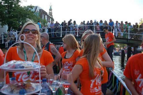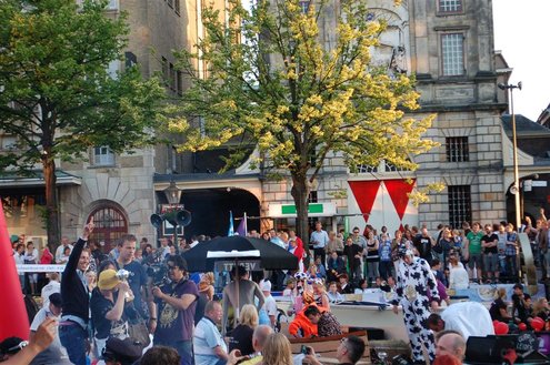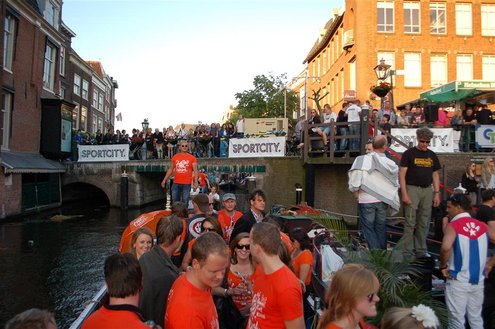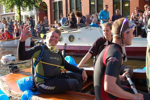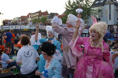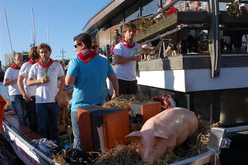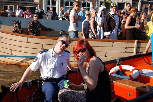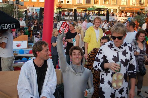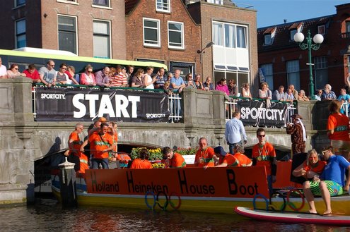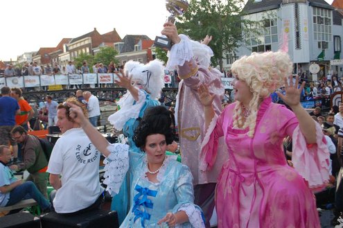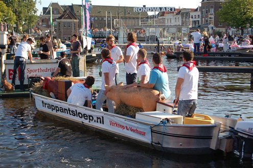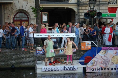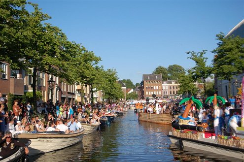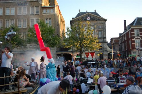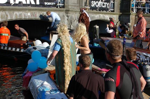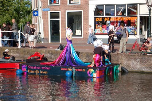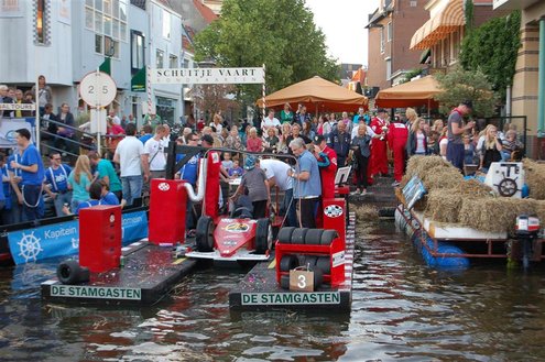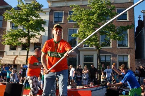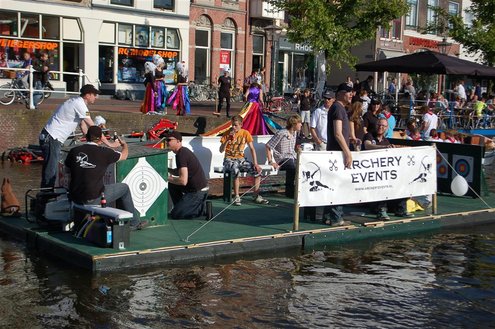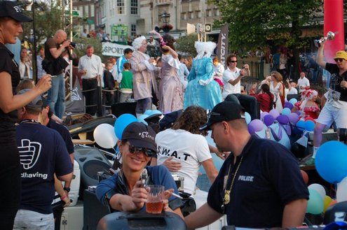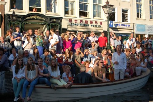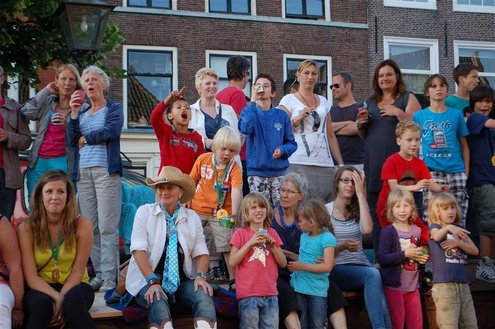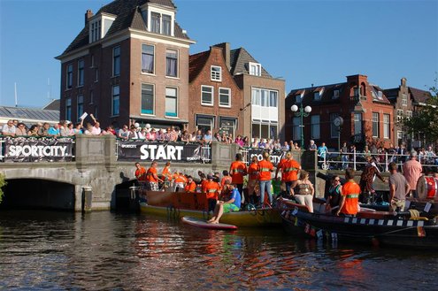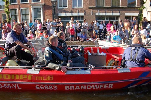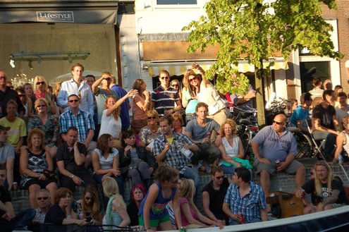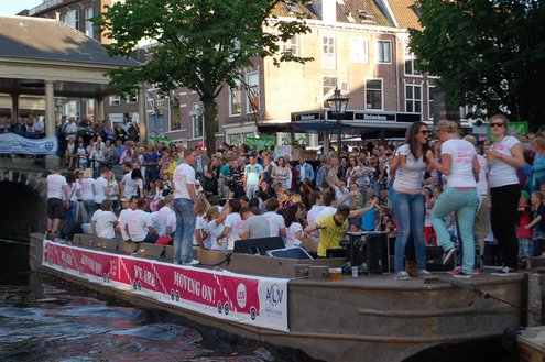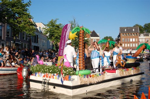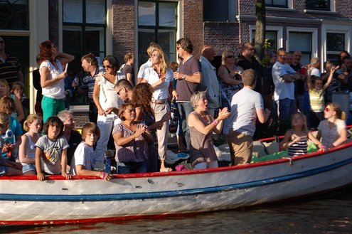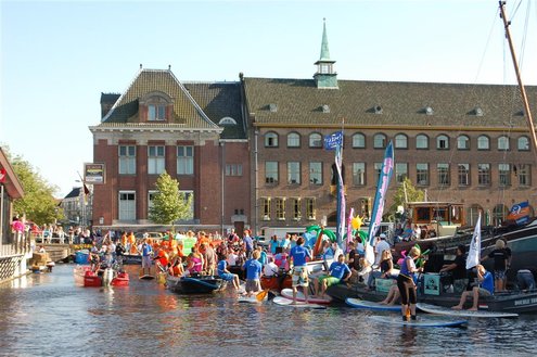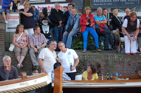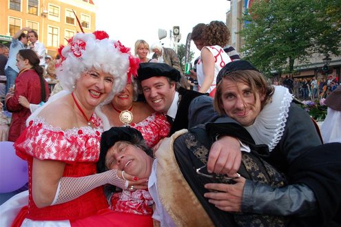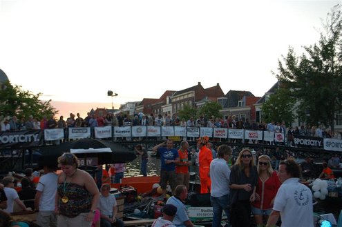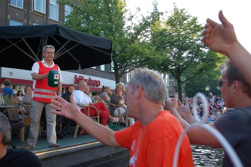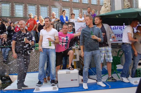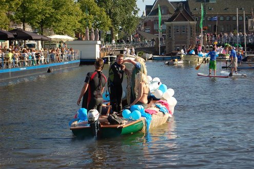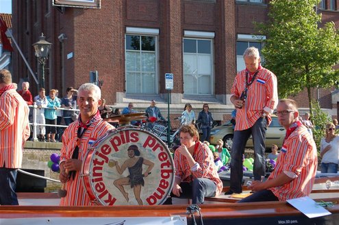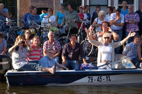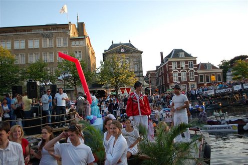 Gisteravond keken duizenden toeschouwers naar de Peurbakkentocht, een daverende aftrap van de Leidse Lakenfeesten 2012. Het weer hield zich fantastisch en zo konden Leidenaren en veel mensen van buiten de Sleutelstad genieten van een prachtig spektakel. Centrummanager Erwin Roodhart praatte de fleurige wateroptocht aan elkaar en deed niet onder voor zijn illustere voorgangers als Aad van der Luit en Chris Verplancke. Café ‘De Roze Beurs’ veroverde met haar dracculaboot de eerste prijs in de categorie Bedrijven; de Voedselbank Leiden e.o. behaalde de eerste prijs met ‘de crisisvaart’ in de categorie Verenigingen en Musicalgezelschap Otis kreeg de eerste prijs in de categorie Muziek met haar indrukwekkende Mozartboot. (Foto’s: Emile van Aelst.)