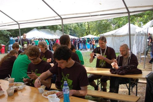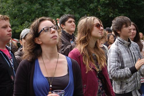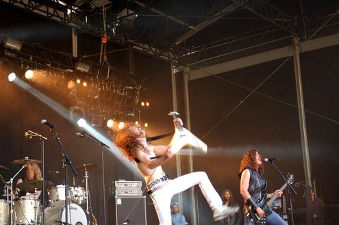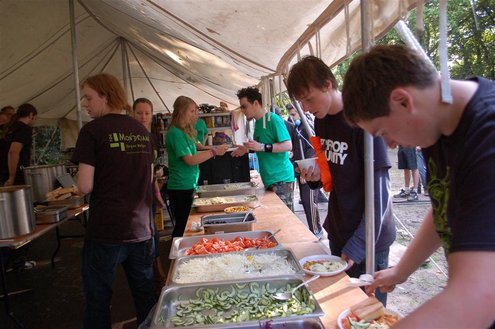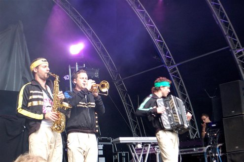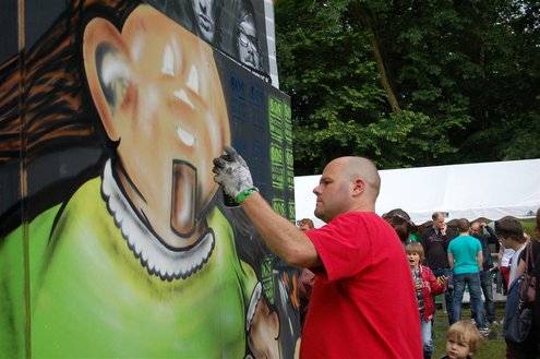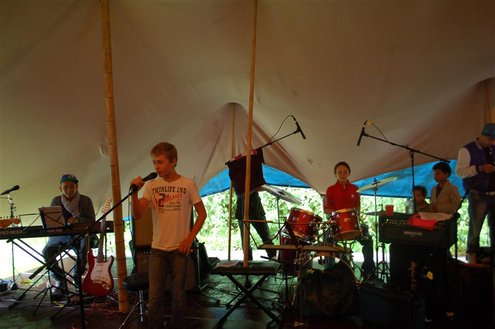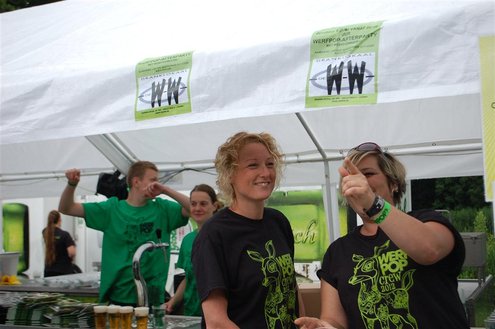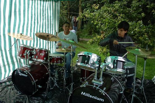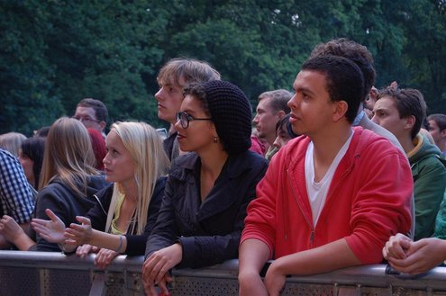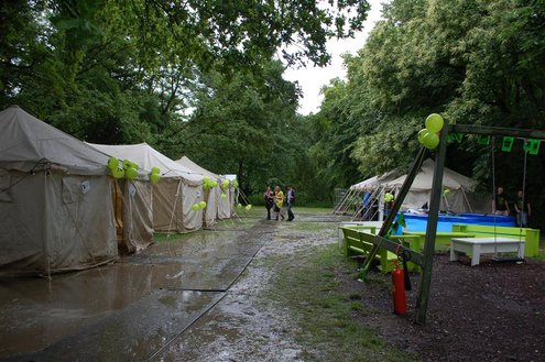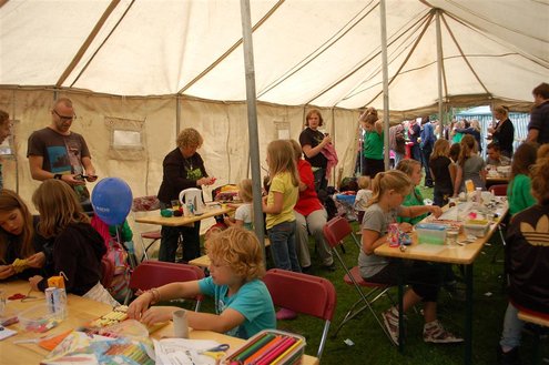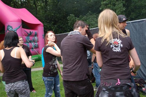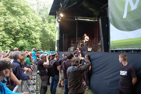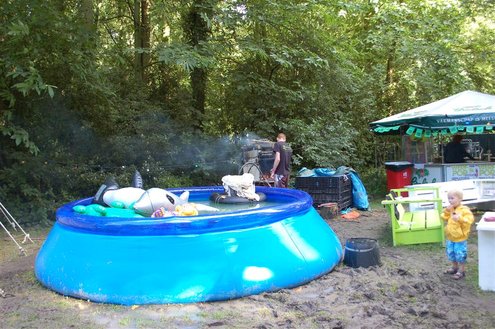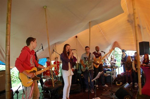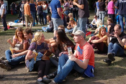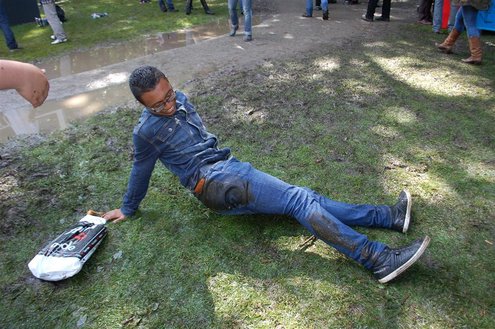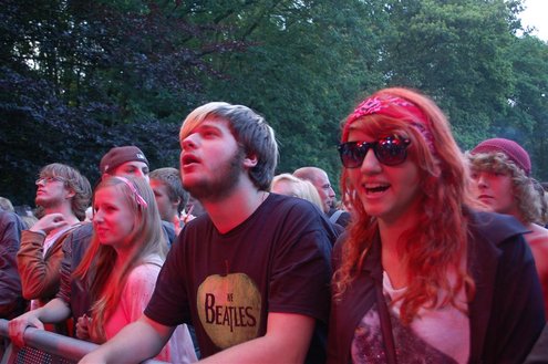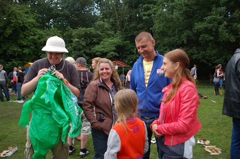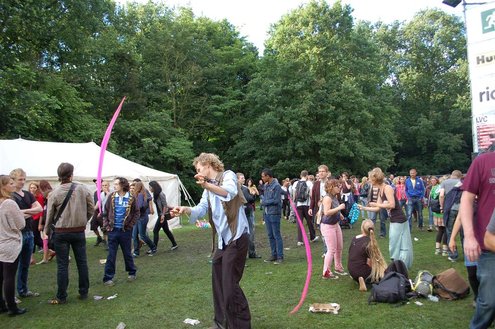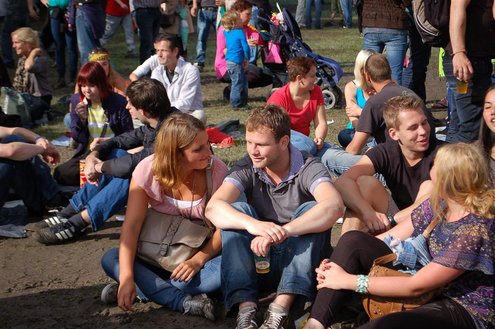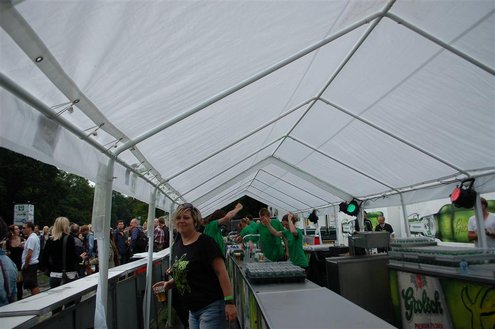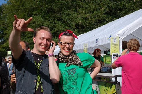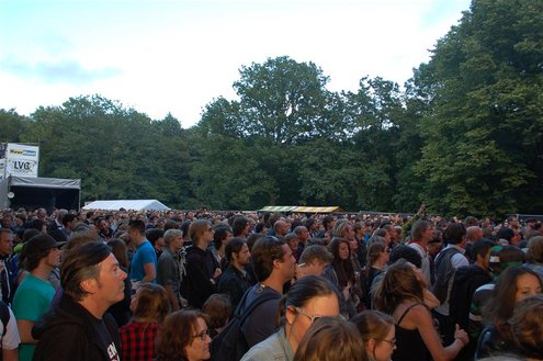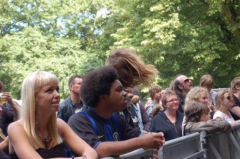 De rubberlaarzen, regenponcho’s, dekzeilen en vuilniszakken waren wel nodig bij de start van Werfpop 2012 in de Leidse Hout. Na een heuse wolkbreuk klaarde het weer iets na 14.00 uur op en kwam de zon zelfs tevoorschijn. Helemaal droog bleef het niet, maar dat mocht de pret niet drukken. Na de wat aarzelende start werd het steeds drukker en genoten de toeschouwers onder andere van ‘The Apollo Project’ en ‘Long Conversations’. Er werd flink geswingd en mee gestampt in de gigantische modderpoel voor de verschillende podia. Deze 31e editie van Werfpop werd afgesloten met een optreden van Sepultura, de vervanging voor Pennywise, die af moest zeggen om gezondheidsreden. Ook de kleine muziekliefhebbers genoten van de workshops, knutselen in de tent en vooral natuurlijk van de modder! (Foto’s: Emile van Aelst.)