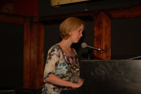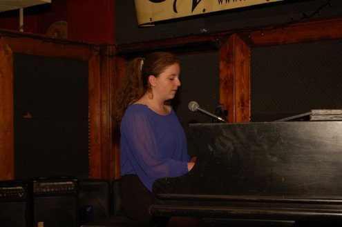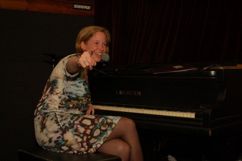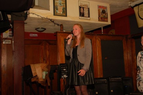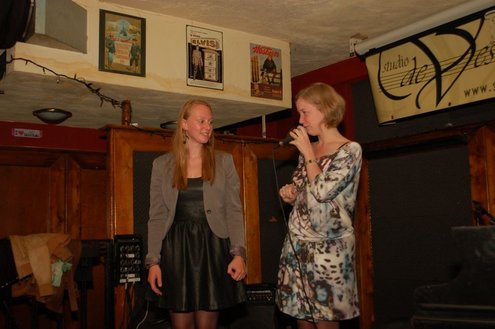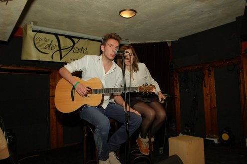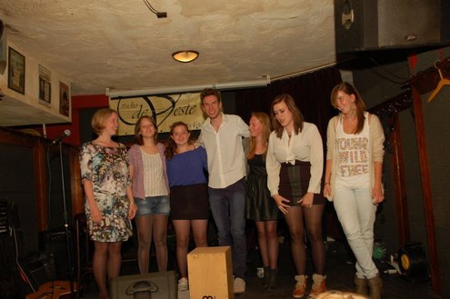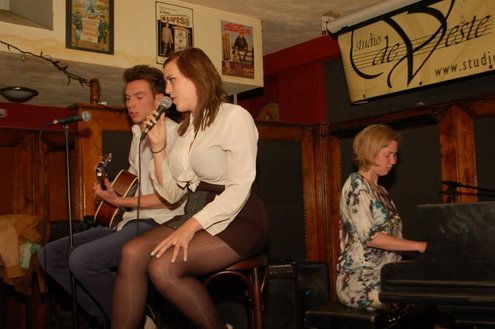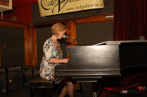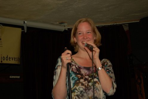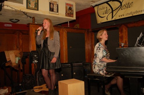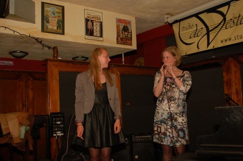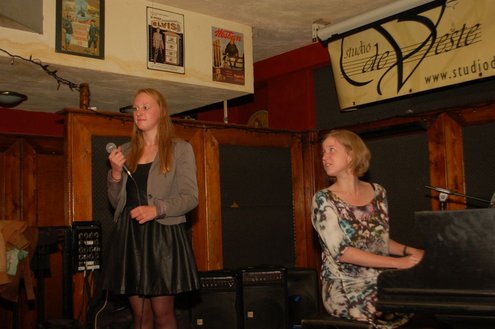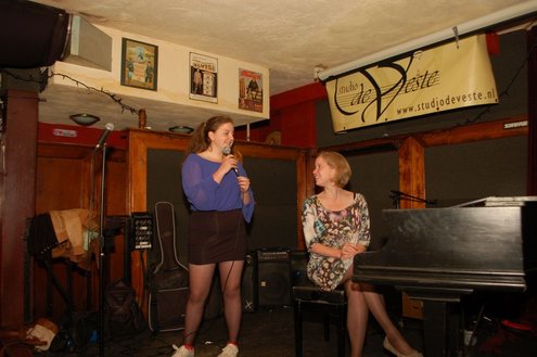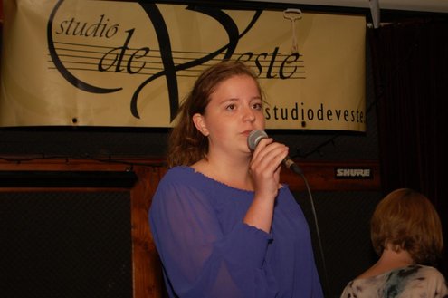 De jonge deelnemers van de Singer/songwriting workshops, die geven werden door de bekende Leidse jazzzangeres Vivienne Aerts, gaven een swingende demonstratie van het eindresultaat bij Studio de Veste. De jonge talenten in de leeftijd van 14 tot 19 jaar brachten het nummer, dat ze de afgelopen drie dagen geschreven en geoefend hadden. Het resultaat is ook op cd vastgelegd. Komende zaterdag zorgen de volwassen cursisten eveneens in Studio de Veste voor een verrassend optreden tussen 20.00 en 21.00 uur. (Foto’s: Emile van Aelst.)