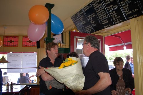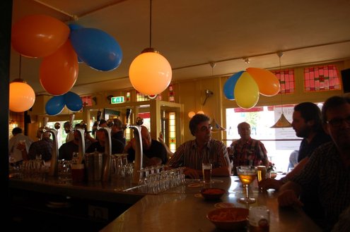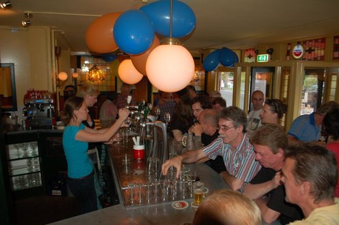 Gisteren vierde Café de Tregter haar 25e verjaardag. Op 1 augustus 1987 werd het bekende Leidse café Aniba overgenomen en na een grote verbouwing herdoopt als de Tregter. Sinds 19 jaar is Marius van der Ploeg de uitbater. De afgelopen maand juli was het etablissement op de hoek van de Herenstraat en de Witte Singel gesloten wegens verbouwing. De gasten konden tijdens het verjaardagsfeestje het resultaat bewonderen, onder een vrolijk muziekje en natuurlijk onder genot van de nodige drankjes. (Foto’s: Emile van Aelst.)