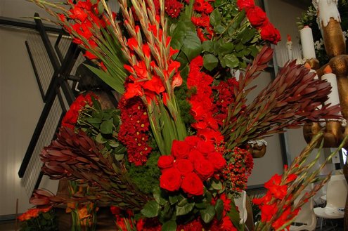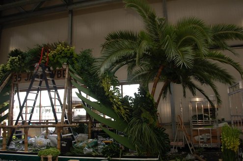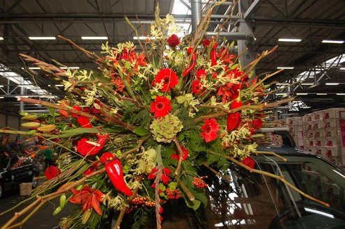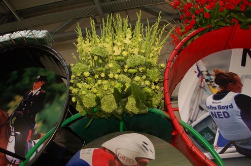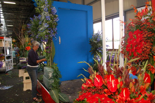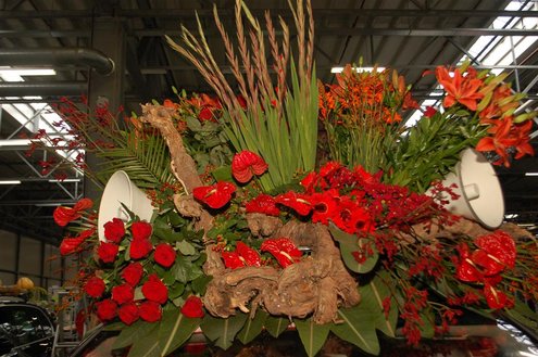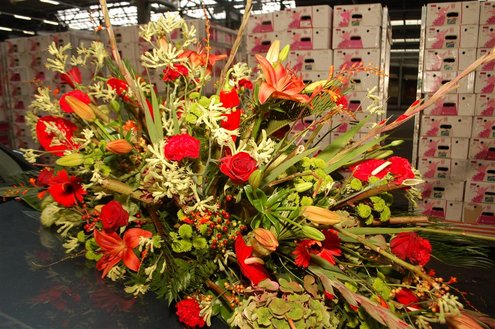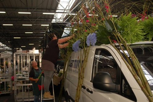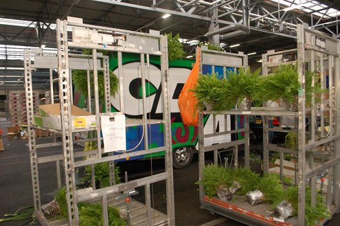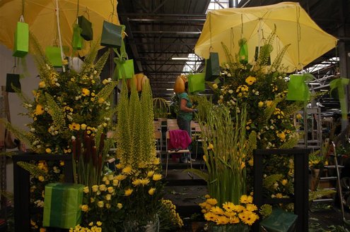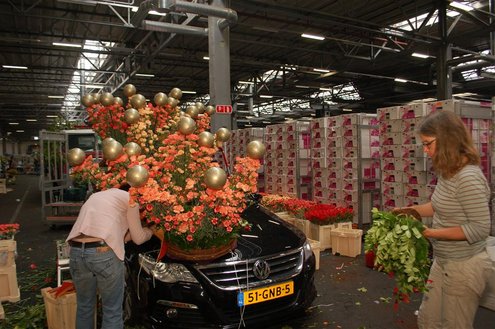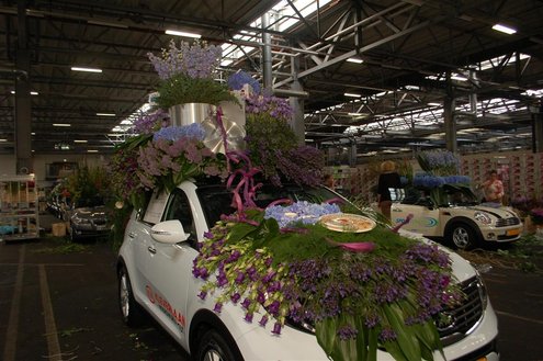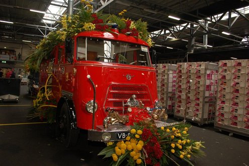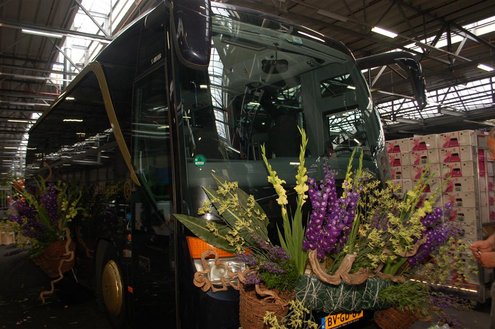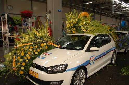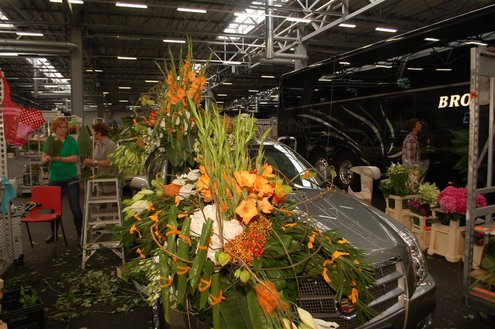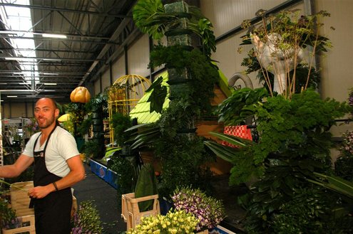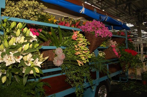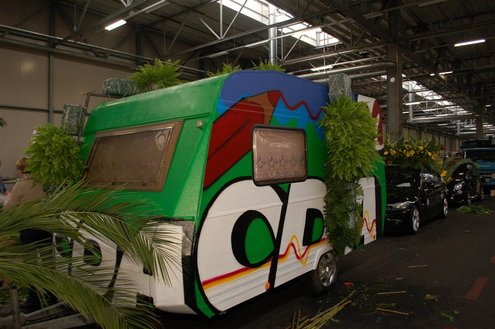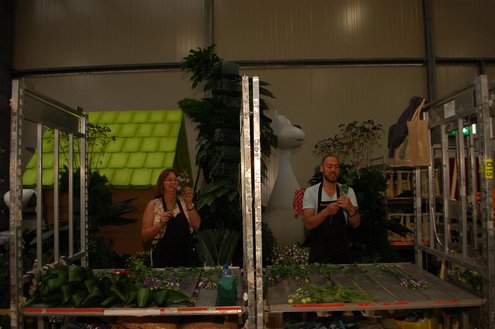 Gisteravond waren de praalwagens in de Bloemenveiling Flora in Rijnsburg te zien en vandaag reed de Flower Parade door de zonnige straten van Rijnsburg, Katwijk en Noordwijk aan Zee. Emile van Aelst was bij het voorbereidende werk, waarbij heel veel mensenhanden heel veel zomerbloemen rangschikten.