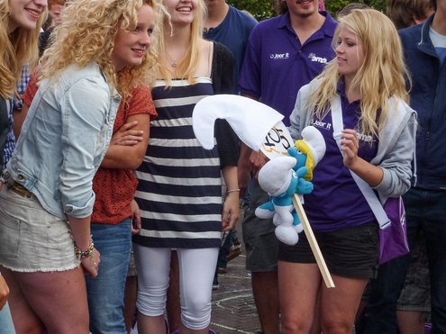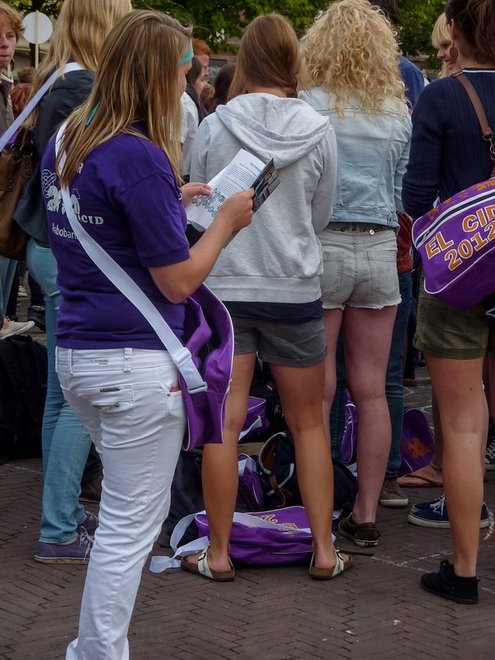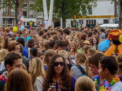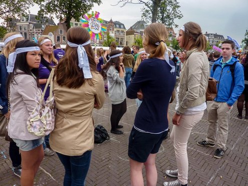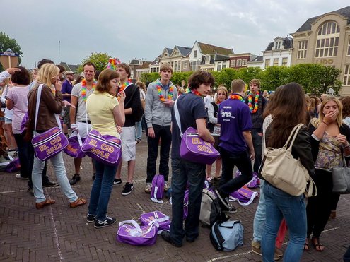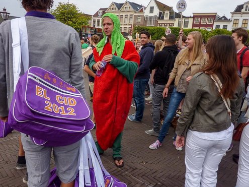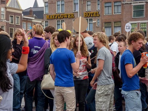 Vanmorgen vanaf 09.00 uur stroomde de Beestenmarkt vol met kersverse Leidse studenten in het kader van de EL CID week. Zo’n 2500 eerstejaars en 380 mentoren bevolkten het plein. Het weer zat in eerste instantie niet helemaal mee, maar later knapte het op en grote groepen trokken lopend of op de fiets het stadscentrum door.