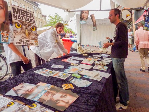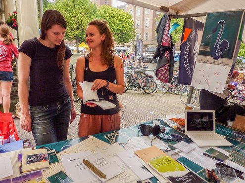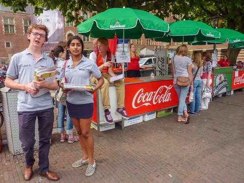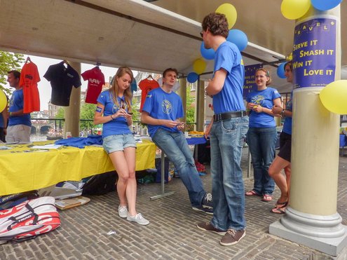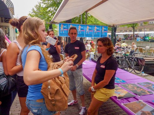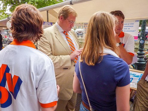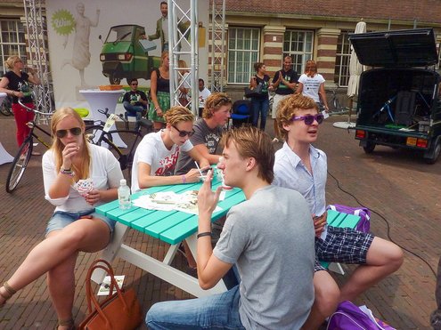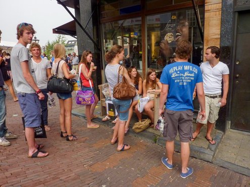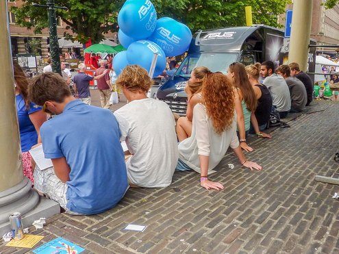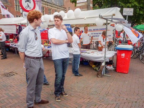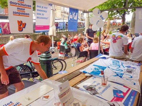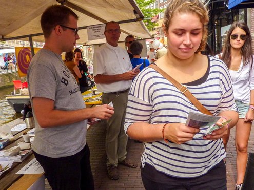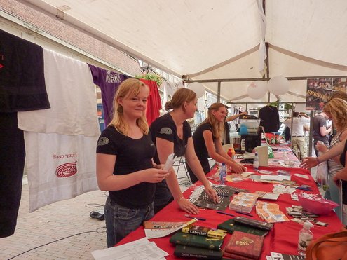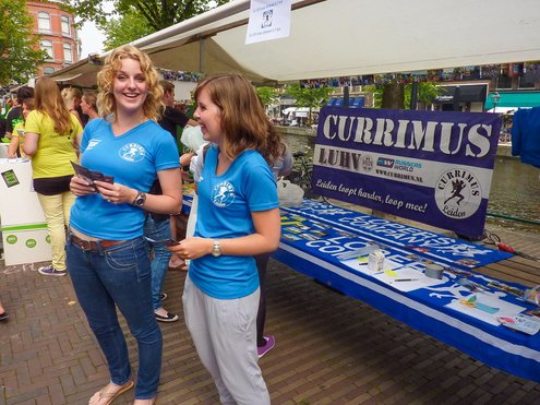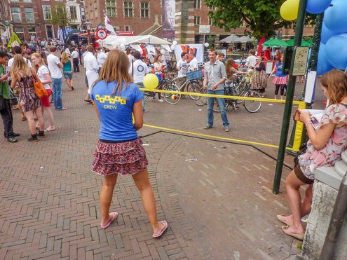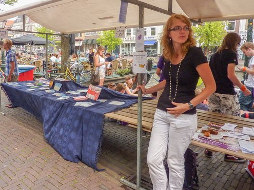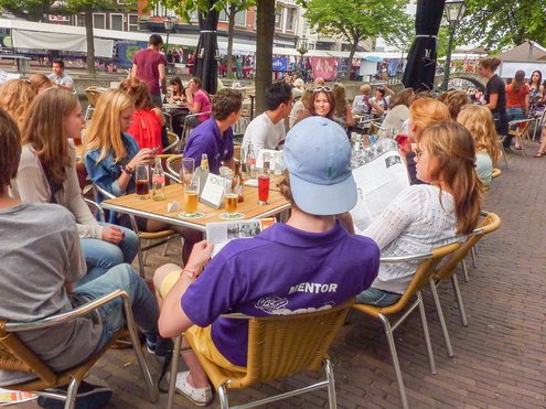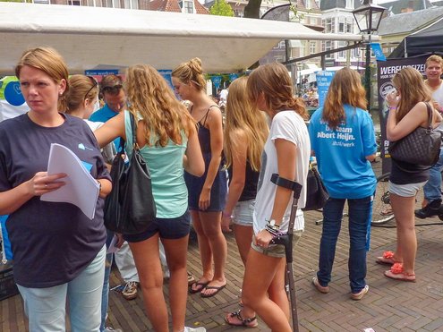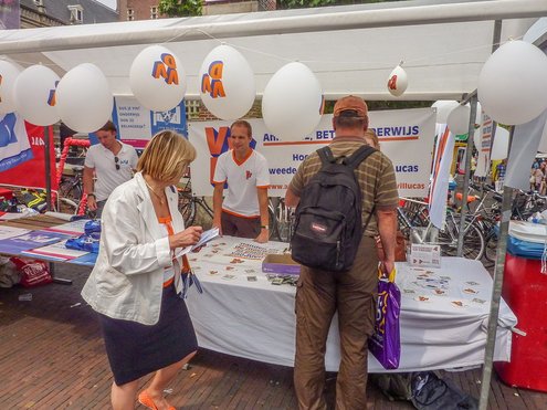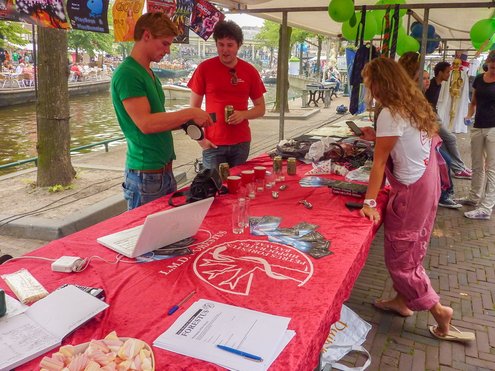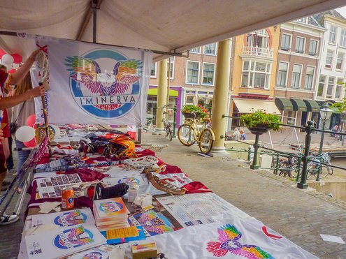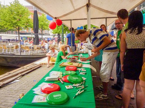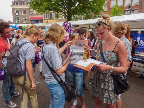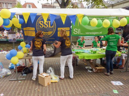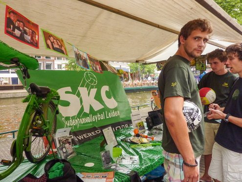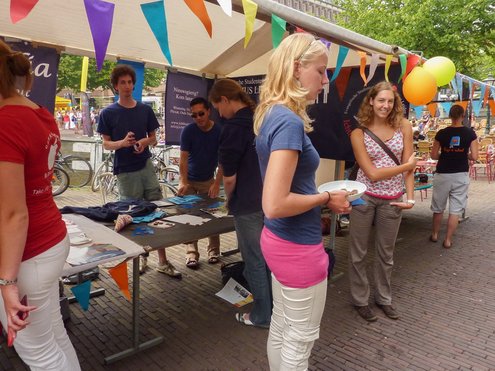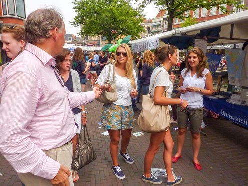Vandaag vond de jaarlijkse EL CID informatiemarkt plaats van 10.00 uur tot 14.30 uur op de Vismarkt en de Nieuwe Rijn. Naast de welbekende studenten- en sportverenigingen stonden er veel commerciële bedrijven, banken, verzekeringen en natuurlijk een aantal politieke partijen, volop in de verkiezingsstrijd. In het stralende zomerweer was het goed toeven voor de eerstejaars, die genoten van de Sleutelstad op de vele terrassen en langs de waterkant. Meer info en volledig programma: www.elcidweek.nl. (Foto’s: J.P. Kranenburg).