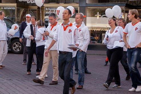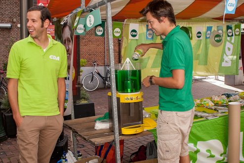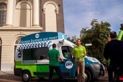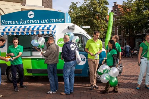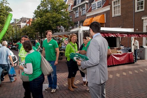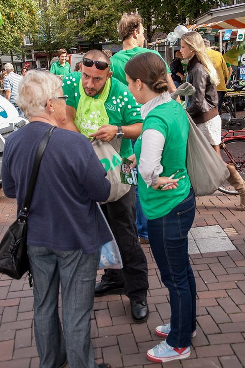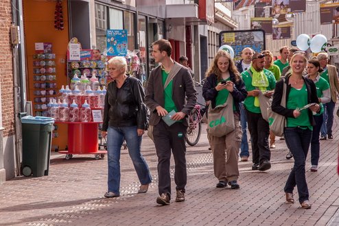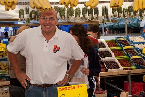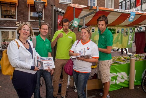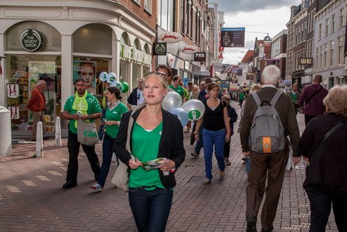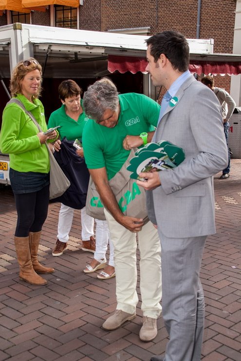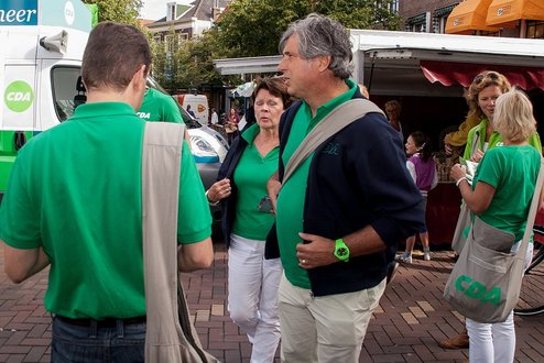 In het kader van de verkiezingsstrijd kwamen vandaag zo’n 50 CDA prominenten naar de Sleutelstad om het winkelend publiek te overtuigen van hun standpunten. Ook de VVD was van de partij en Fred Teeven probeerde naast de politieke boodschap ook groente en fruit aan de man te brengen.