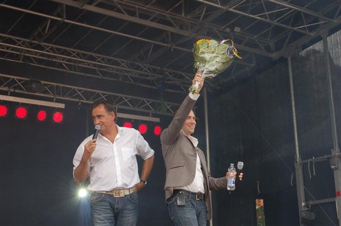 De achtste editie van het Pleinfestival op de Garenmarkt eindigde vandaag met de spetterende optredens van Roselle, Mike Peterson, Danny de Heer, Wesley Klein, Glennis Grace en Belle Perez. De sfeer zat er goed in en het werd weer een gezellige meezingmiddag, waar hele families zichtbaar van genoten. En wat is er nog mooier dan even met je idool op de foto te mogen? Gisteren trad Jewelste op en werd de finale van HutsPop gehouden. Organisator Paul Louwers kan terugkijken op een zeer geslaagd evenement. (Foto’s: Emile van Aelst.)