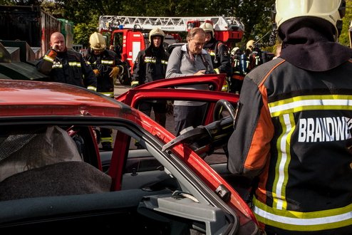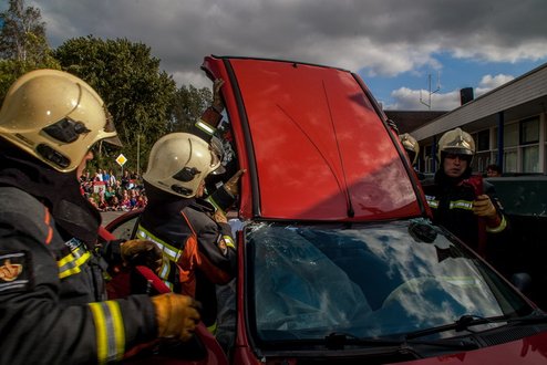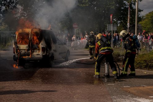 “Hoe kom je uit een gekantelde auto en wat te doen als de frituurpan in vuur en vlam staat?” Dit en vele andere leerzame en nuttige tips kwamen gisteren aan de orde bij de open dag van de Leiderdorpse brandweer. Bij de kazerne stonden diverse informatiestands opgesteld en oud én jong konden meedoen aan allerlei activiteiten. Met een grote einddemonstratie werd de dag rond 16.00 uur afgesloten. (Foto’s : J.P. Kranenburg.)