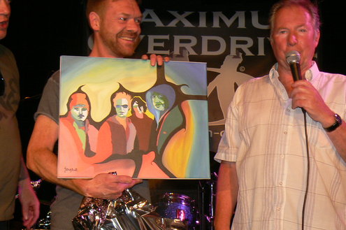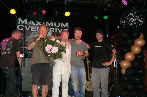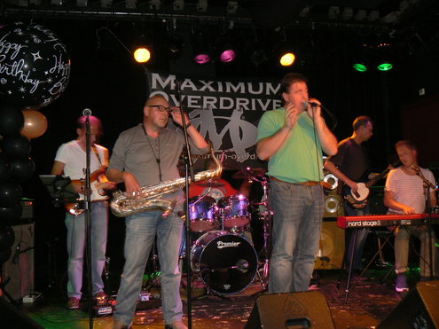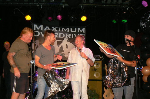 De Leidse rockband Maximum Overdrive vierde afgelopen zaterdag het 20-jarig bestaan in de Qbus. De band werd in 1992 opgericht en timmert lekker aan de weg. Op het spetterende verjaardagsfeest werden de bandleden en het publiek getrakteerd door optredens van De Deik, Solid Brew, Bleus Willies, PAM, Barry Badpak en Anton & Friends. Alle bezoekers ontvingen een cd van de swingende Leidenaren en de band zelf kreeg uit handen van Willem Gressie een schilderij gemaakt door Dick Bakhuizen van den Brink, een dinerbon en bloemen. (Foto’s : Marjo Heemskerk.)