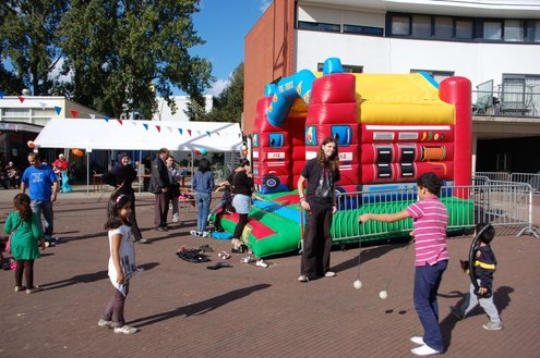 Vanmiddag is het Burendag in Groenoord en de Slaaghwijk. Vanaf 15.00 uur organiseren Gezinscentrum Slaaghwijk, Speeltuin de Merendroom en B4kids de Draaimolen, een feest voor jong en oud. Kinderen kunnen onder andere knutselen, cake versieren, spelletjes doen, zich laten schminken, en als het droog blijft midgetgolf spelen of aan de slag in de zandbak. Een groep jongeren van het Wellant College in Oegstgeest zal de activiteiten begeleiden. Kinderen die mee willen doen, kunnen tot 16.00 uur een gratis strippenkaart ophalen bij de speeltuin. De dag duurt tot 17.30 uur.