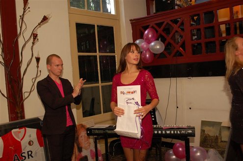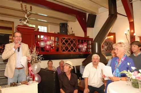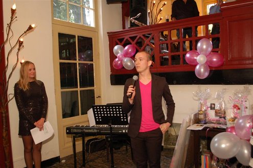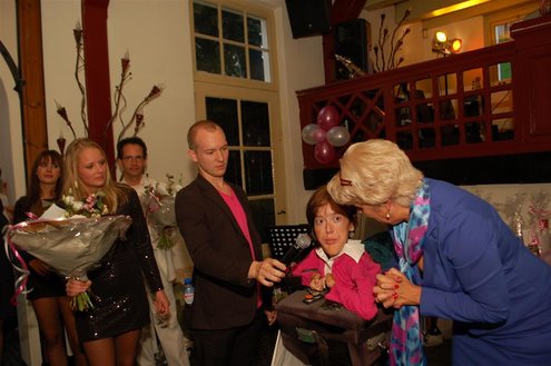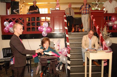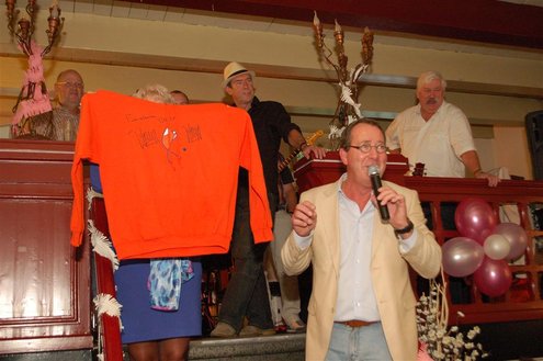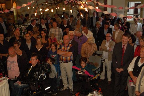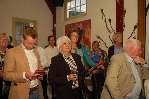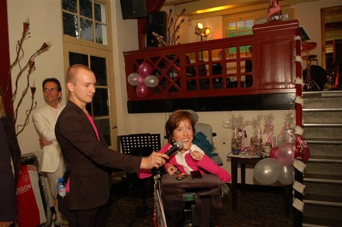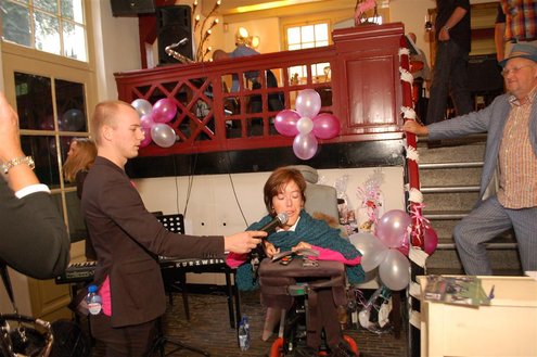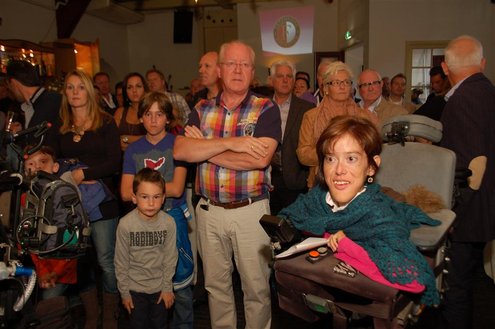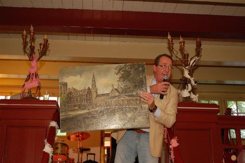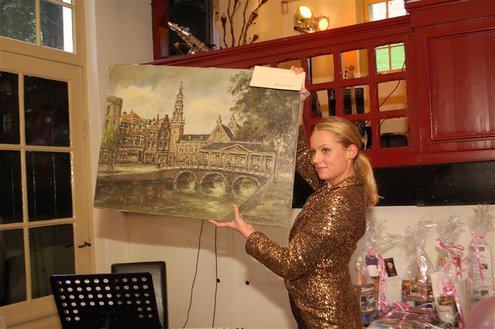 Britt Abrahams, een van de redacteuren van het magazine Unlimited, organiseerde afgelopen zondag een heel bijzondere veiling in Koetshuis de Burcht. De opbrengst was bestemd voor de Stichting Bikkel Anne om een Bikkelbus aan te kunnen schaffen. Het blad Unlimited wordt gemaakt voor en door jong volwassenen met een chronische ziekte en/of lichamelijke beperking, onder het motto “Hou je vooral bezig met wat je wel kunt”. De redactie van het blad zit in Haarlem en een groot aantal medewerkers/redacteuren kunnen daar niet of moeizaam komen, omdat er geen geschikt vervoer is. Reden genoeg dus om een veiling te organiseren, waaraan iedereen belangeloos meewerkte. Onder grote belangstelling leidde Chris Verplancke de veiling, waarbij elke beweging als bod gold. Streng maar rechtvaardig veilde Verplancke de stukken, zoals schilderijen, een gesigneerd Fijenoordshirt en diverse andere spullen en arrangementen. Rond 18.00 uur maakte Clarita Holswilder van Koetshuis de Burcht het voorlopige eindbedrag van € 16.664,00 bekend. De middag werd muzikaal opgeluisterd door onder andere de BCL Bluesband en musicalzangeres Dominique van Son en werd mede mogelijk gemaakt door familie, vrienden en sponsors zoals Business Club Leiden. (Foto’s: Emile van Aelst.)