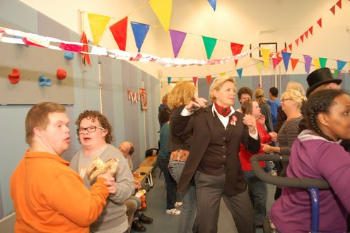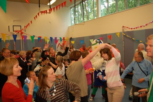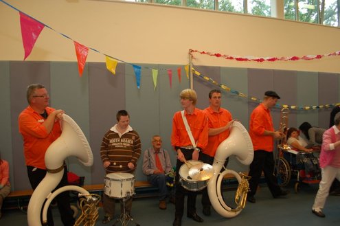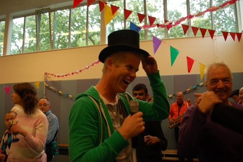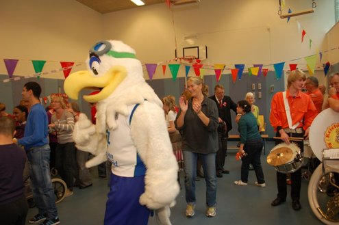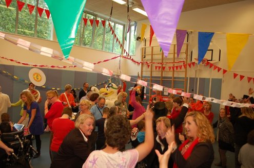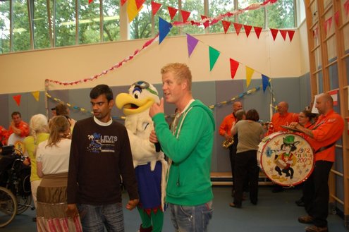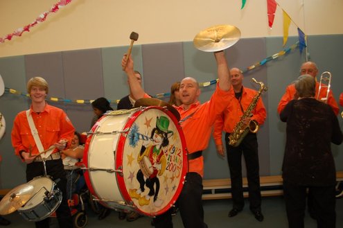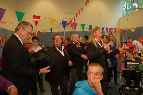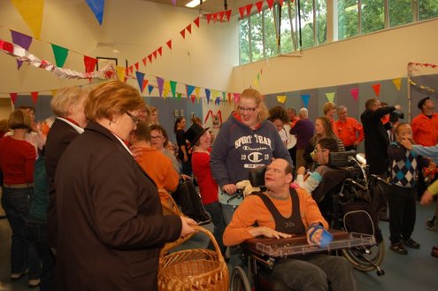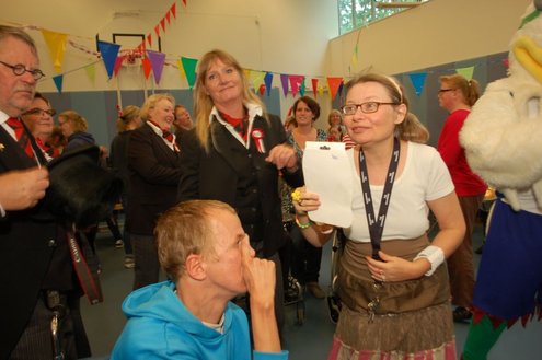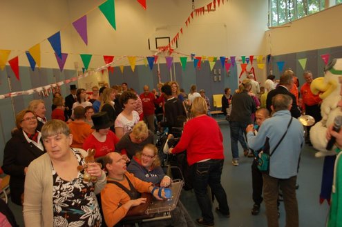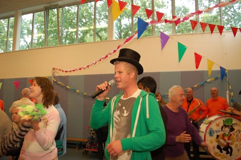Vandaag verzorgden de vrijwilligers van de 3 October Vereeniging een gezellig feestje voor verstandelijk gehandicapten in diverse Leidse instellingen. Overal waar de feestbus stopte barstte de 3 oktoberviering al een beetje los. Er werden knuffels en roze koeken uitgedeeld en natuurlijk de polonaise gedanst. De muziek werd verzorgd door de Torentrekkers en Dave en Burdie verhoogden de sfeer met hun optredens. Emile van Aelst was van de partij in de Zuidwester in Leiden Zuid-West.