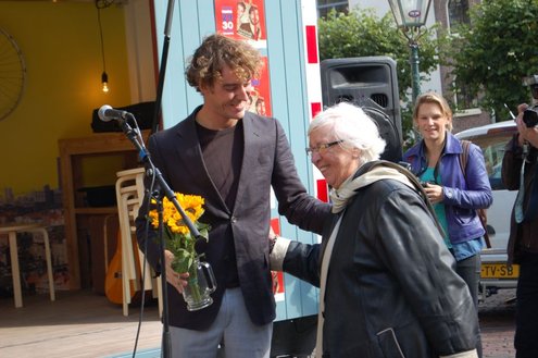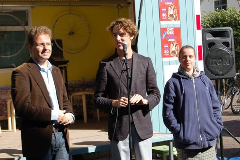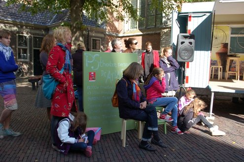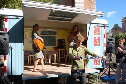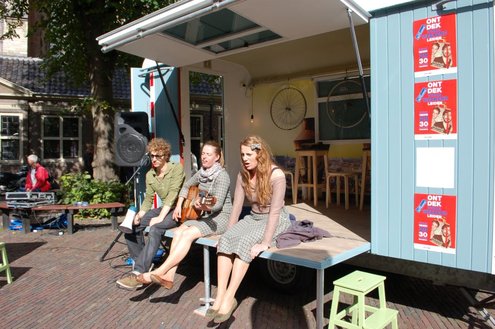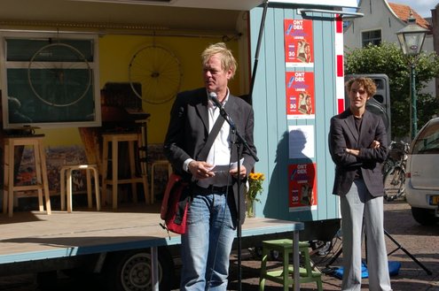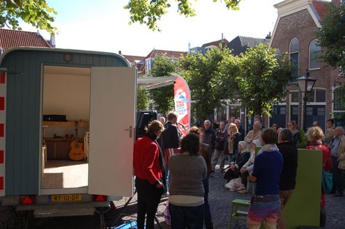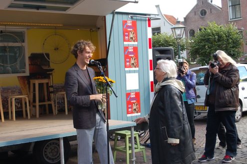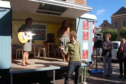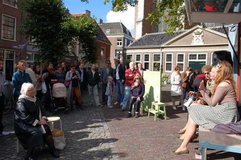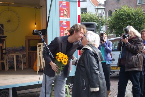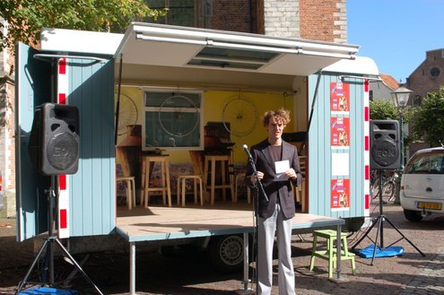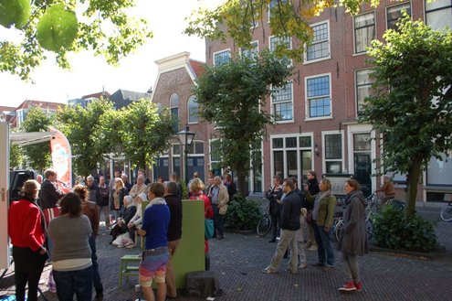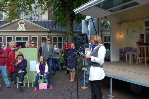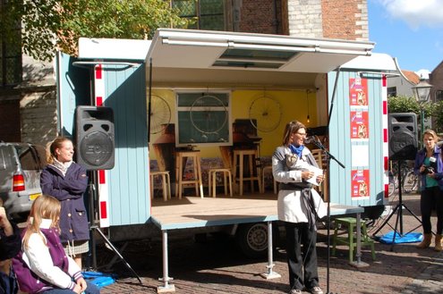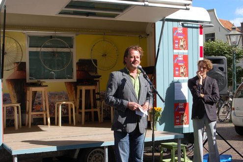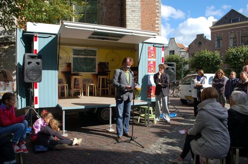 Gisteren gaf wethouder Jan-Jaap de Haan de feestelijke aftrap van de ‘Atlas van Leiden’, een bijzonder project van het PS|theater. Vier jaar lang brengt dit kleinste Leidse theater het Verdriet, de Hoop, het Geloof en het Vergeten van Leiden in kaart. Allerlei locaties in de stad worden gebruikt als tijdelijk podium, waarbij een schaftwagen dient als theater en kleedkamer.Tijdens dit openingsweekend van de Atlas op de Markt brengt PS|theater delen uit de hoorspelvoorstelling 7 Singels Route en wordt er door vier markante Leidenaren, Walter van Peijpe, Natascha Schulte (en baby Koen), Ton Hazenberg en Ton van der Meer ‘De Staat van Leiden’ uitgesproken. De start vond plaats voor de Hooglandse kerk. Meer info: www.pstheater.nl (Foto’s: Emile van Aelst.)