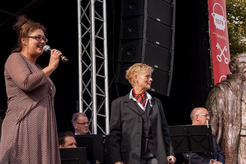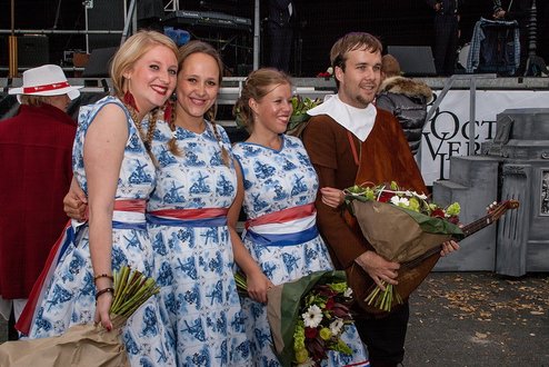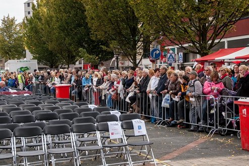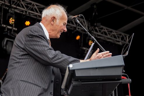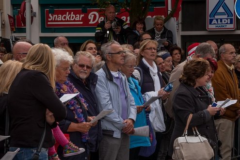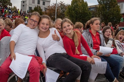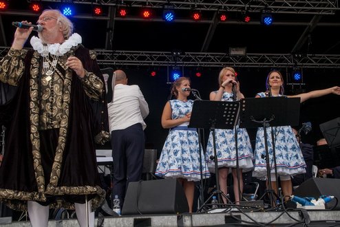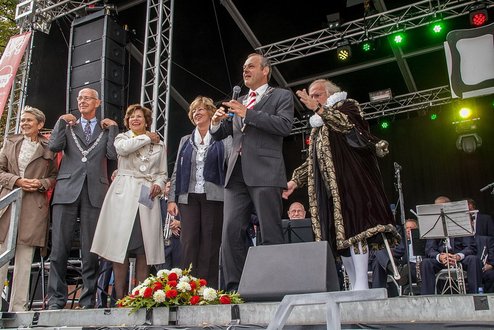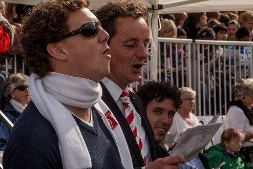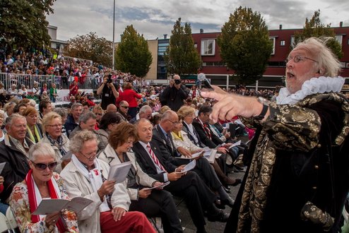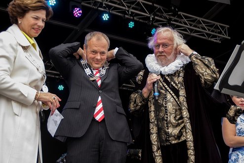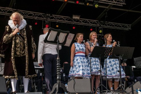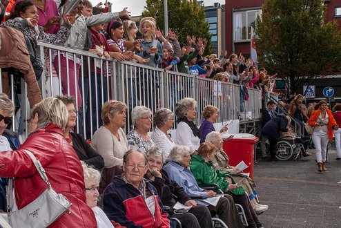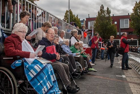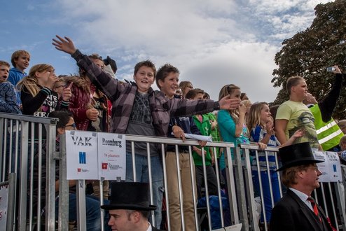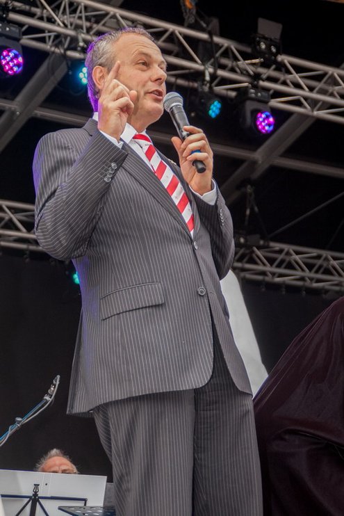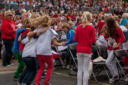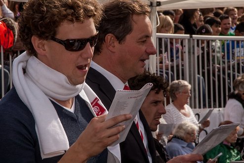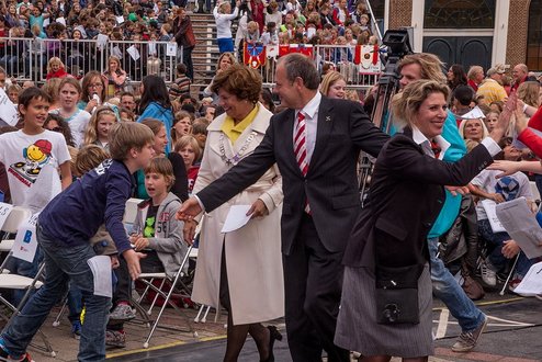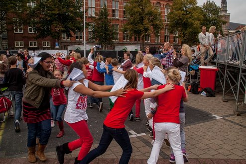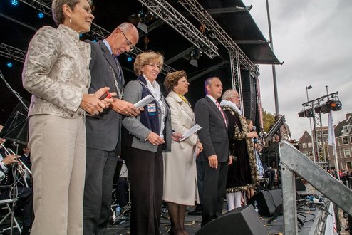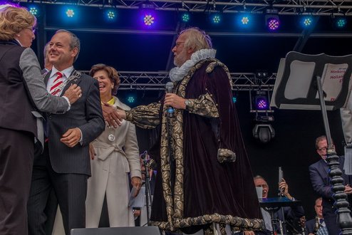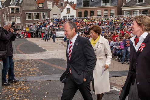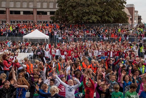 Vanmiddag rond 13.00 uur daalde burgemeester Van der Werf postuum van zijn sokkel en haalde het doek op voor een schitterend liedjesfestijn: het minikoraal! Uit 3300 kinderkelen klonken de vaderlandse liederen en natuurlijk ook het Leidse Volkslied “Leiden mijn stad”. Niet iedereen kwam uit de Sleutelstad, want er waren ook basisschoolleerlingen uit Leiderdorp, Zoeterwoude, Oegstgeest en Voorschoten. Ook de huidige Leidse burgervader, Lenferink en de (loco)burgemeesters van genoemde gemeentes waren aanwezig en zongen uit volle borst mee. Het minikoraal werd vandaag voor de 20e keer gehouden. De pianist van weleer, Dhr. v.d. Kwartel, beklom voor deze gelegenheid nog éénmaal het podium. K&G3 verzorgde als altijd de muzikale begeleiding met de achtergrondzangeressen: de dames Lucas, Noyon en Filemon. (Foto’s: J.P.Kranenburg)