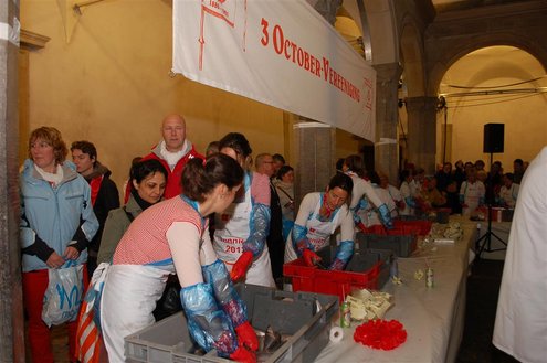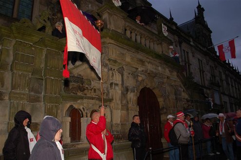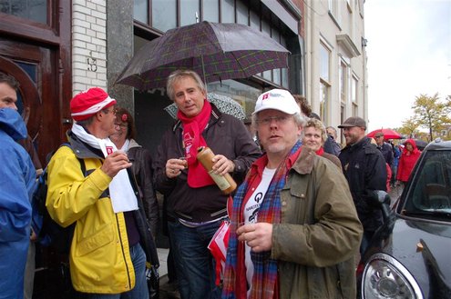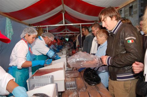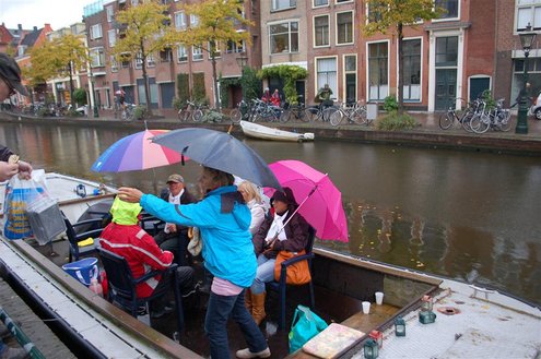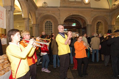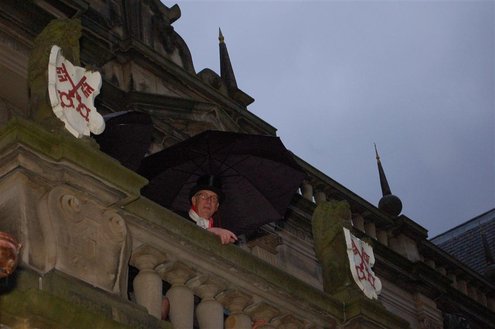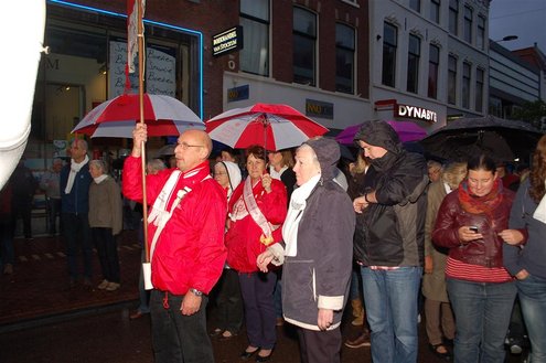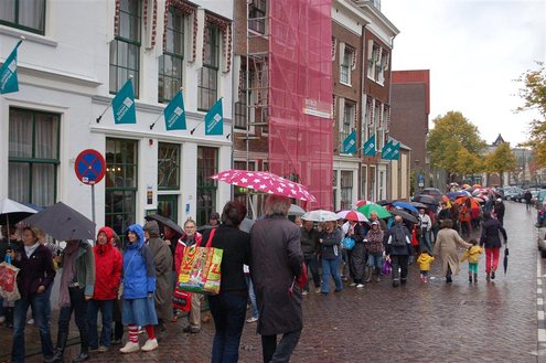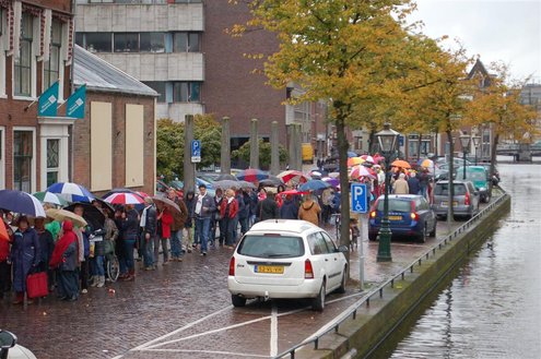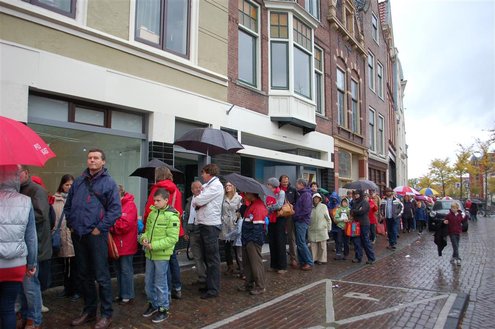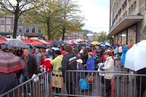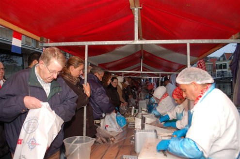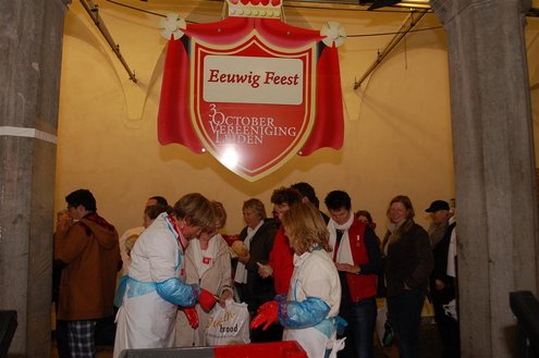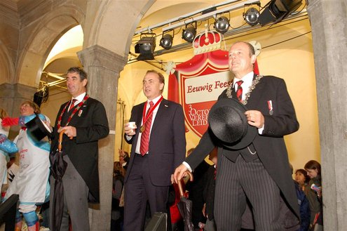 Vanmorgen waren de Leidenaren weer vroeg uit de veren voor de traditionele reveille op het Stadhuisplein. De paraplu’s waren hard nodig, een groot contrast met vorig jaar, waarbij de 3 Oktoberfeesten in korte broek gevierd konden worden. Aansluitend vond de uitreiking van de Haring & Wittebrood weer plaats en er waren dit jaar 32.160 haringen besteld, die gingen er goed in! (Foto’s: Emile van Aelst.)
