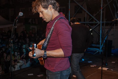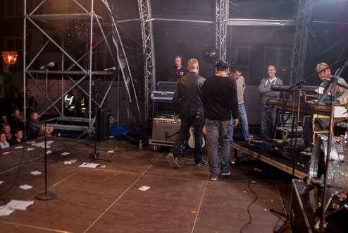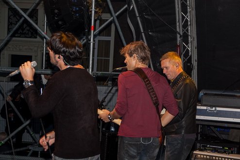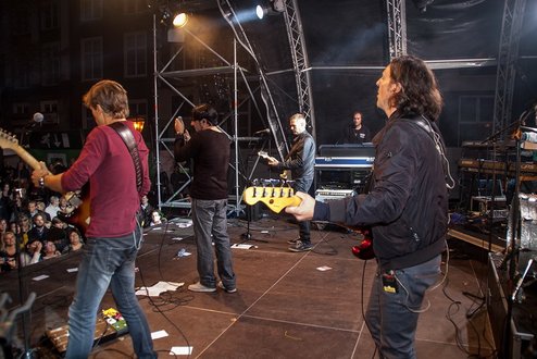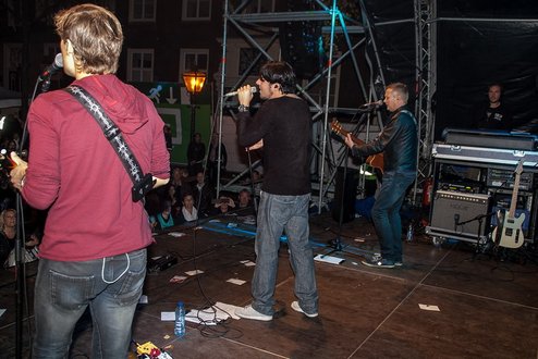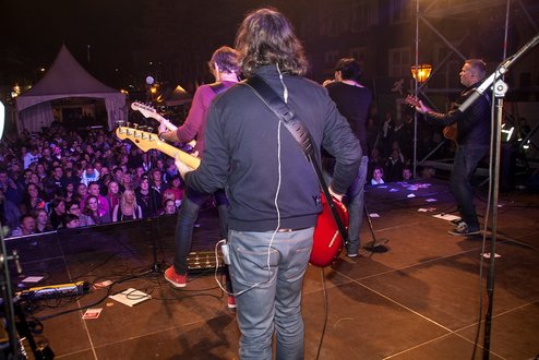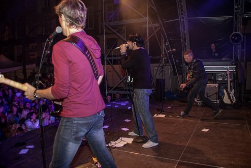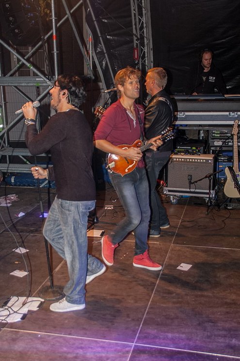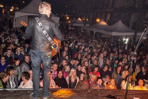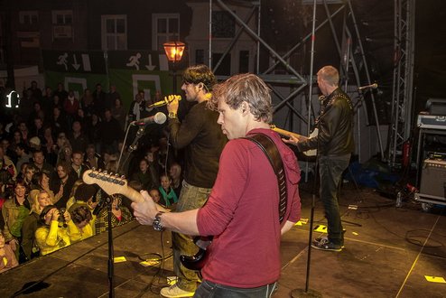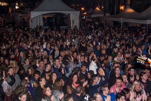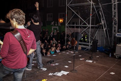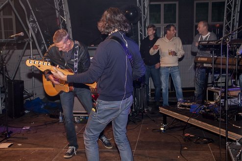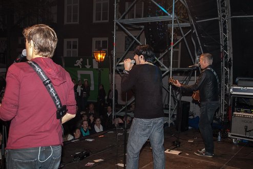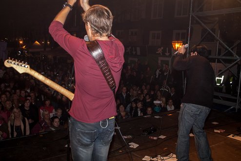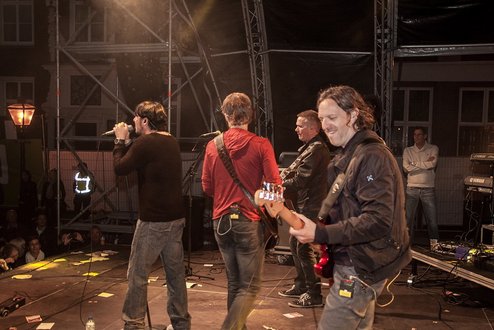 Naast de Garenmarkt en de Nieuwe Rijn was er tijdens de 2 en 3 oktoberfeesten, een nieuw (drijvend) festivalterrein op het water langs het Rapenburg. In een samenwerking van Feestcafé Hoppa en Cas-Events werd twee dagen lang een geweldig swingend en gratis toegankelijk feest gehouden op 100 pontons met onder andere de 3 J’s uit Volendam. Ook Sleutelstad FM zond twee dagen live uit vanaf het feestterrein. (Foto’s: J.P.Kranenburg.)