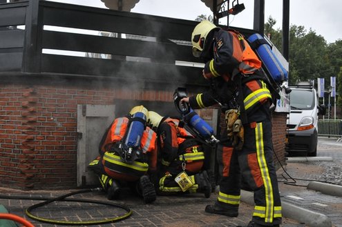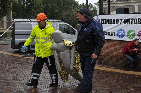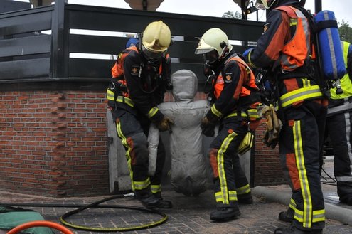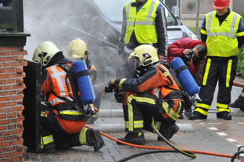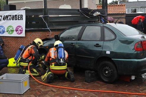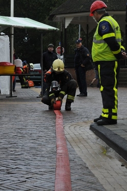 Vandaag worden in Warmond brandweerwedstrijden gehouden, waar meerdere korpsen uit de regio aan meedoen. Een heel scenario wordt in kaart gebracht, waarbij een personenauto tegen een gebouw botst en in brand vliegt. De bestuurder zit nog in de auto en een andere persoon ligt er onder. In het gebouw blijken bovendien een paar kinderen te zitten, waarvan de moeders ‘in paniek’ aan komen rennen. In het verhaal komen diverse onderdelen van het brandweerwerk aan de orde. Vanavond om 18.45 uur wordt het winnende team bekend gemaakt. (Foto: Het korps uit Leiderdorp, foto’s: C. van der Star.)