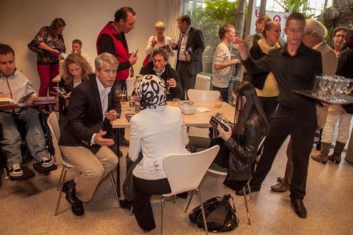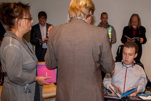 Gisteren vond de bijzondere presentatie plaats van het boek ‘Huis met een Hart’, in de tuinkamer van restaurant Hortus Botanicus. Het boek is een uitgave van Stichting Xenia Hospice en schetst de situatie van zowel vier jongeren, als een aantal nauw betrokkenen over de komst van Xenia Hospice voor jonge mensen met een levensbedreigende ziekte. Volgend jaar opent Xenia, als eerste hospice voor jongeren in Nederland, haar deuren aan de Kloosterpoort in Leiden. Na het welkomstwoord door voorzitter Ramses Braakman gaf initiatiefneemster Jacqueline Bouts een toelichting over de totstandkoming van het boek. Roos Jonker, ambassadrice van Xenia, reikte aan de vier jongeren vervolgens het eerste exemplaar uit. Meer info: www.xeniahospice.nl (Foto’s: J.P.Kranenburg.)