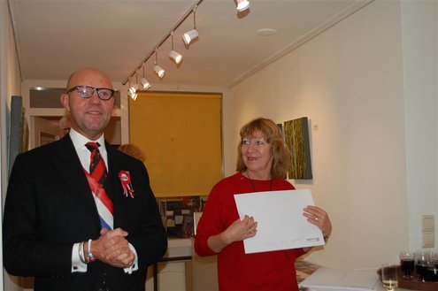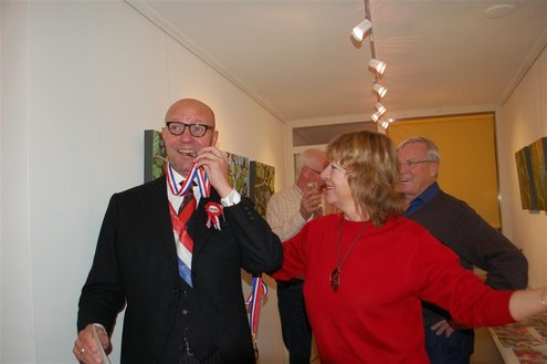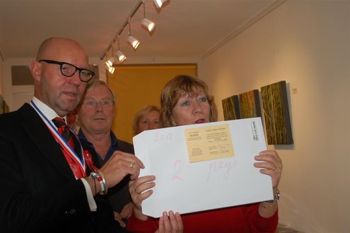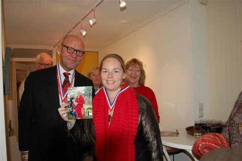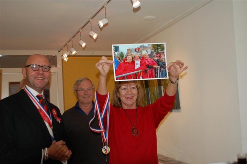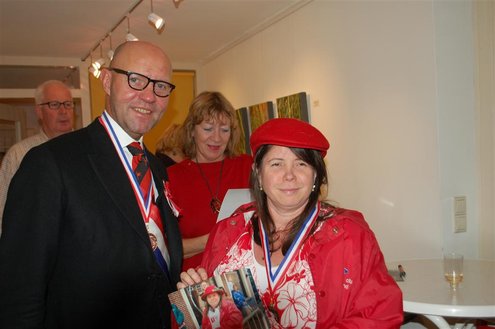 Gisteren reikte Erick van Zuylen, commissaris van de PR commissie van de 3 October Vereeniging, de prijzen uit aan de best geklede Rood/Wit feestgangers, die naar de optocht stonden te kijken. De feestelijkheden vonden plaats in galerie de Rode Cirkel aan de Doezastraat. De winnares, zie bovenstaande foto, krijgt volgend jaar een VIPontvangst bij de uitreiking van Haring & Wittebrood. Andere prijswinnaars ontvingen een lunch bij Babbels, of muntjes voor de kermis van volgende jaar. Alle 30 genomineerden kregen bovendien een herinneringsmedaille en een afdruk van hun foto mee. (Foto’s: Emile van Aelst.)