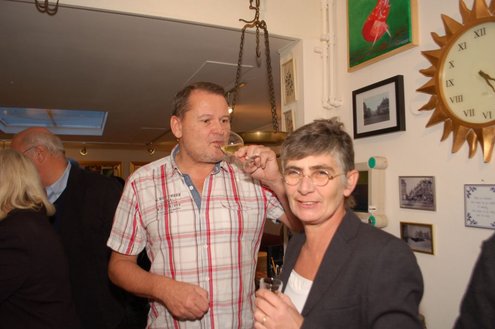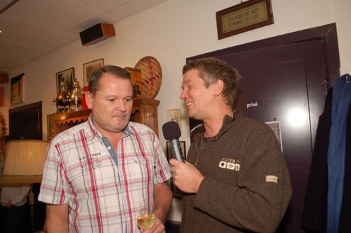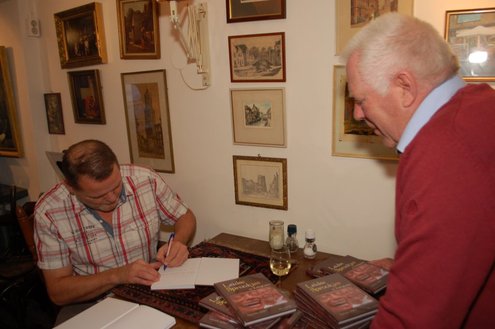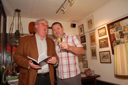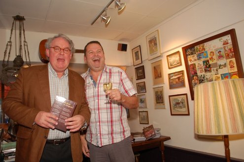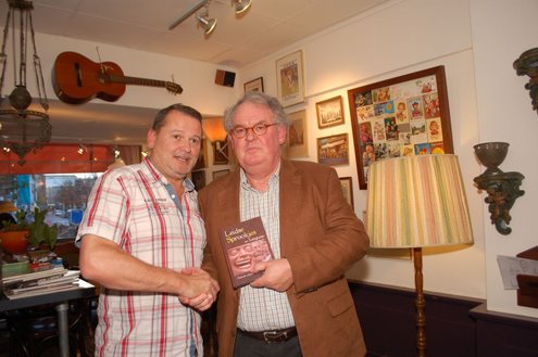 Henk van der Post (links) overhandigt het eerste exemplaar aan 'echte Leidenaar' Rens Heruer (Foto's: Emile van Aelst).