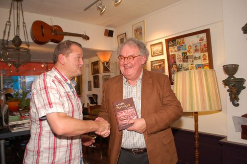 Oud-hoofdredacteur Henk van der Post van het Leidsch Dagblad heeft een boekje geschreven: ‘Leidse Sprookjes en Zottigheden’. Vanmiddag overhandigde de auteur in Haar Gangetje het eerste exemplaar aan Leidenaar Rens Heruer. De negen verzonnen verhalen spelen zich af in historisch Leiden. Enige gelijkenis met bepaalde personen zou op toeval berusten.