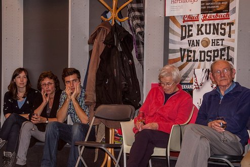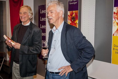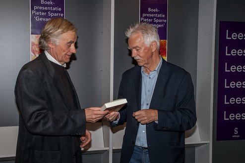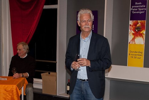 Gisteravond vond de presentatie plaats van de debuutroman ‘Gevangen’ van Leidenaar Pieter Sparre (pseudoniem voor Pieter Vroegop) bij Kooyker/Selexyz. Dichter Piet Janssen, goede vriend van de auteur, nam het eerste exemplaar in ontvangst en stelde vervolgens een aantal vragen over het ontstaan van het verhaal, of het autobiografisch is en of de schrijver geïnspireerd was door de hilarische bestseller ‘Vijftig tinten grijs’ maar dan vanuit het mannelijke oogpunt bekeken? Sparre gaf aan dat het boek niet over hemzelf gaat en dat is maar gelukkig voor de Leidse schrijver, want in het verhaal laat academicus Johan zich meeslepen in het wereldje van drugsverslaving, betaalde seks en criminaliteit. ‘Gevangen’ is verkrijgbaar in de boekhandel of bij de schrijver via: www.pietersparre.nl (Foto’s: J.P.Kranenburg.)