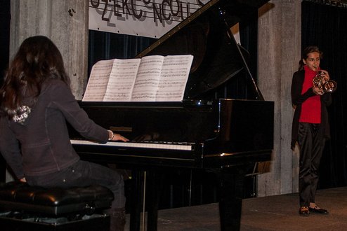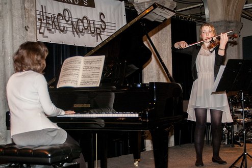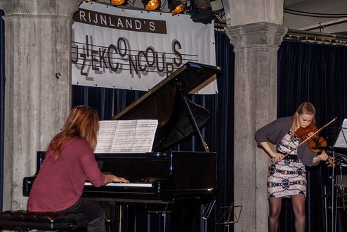 Afgelopen weekend werd in De Waag het Rijnland’s Muziekconcours gehouden voor jonge muzikanten tussen 7 en 18 jaar. Het concours vond voor de 14e keer plaats en werd gewonnen door het duo Lisette Carlebur op viool en Xenia Evers op piano. De jury uitte zich lovend over de jonge talenten: “Zeer muzikaal duo dat nuances van de romantische vioolsonate van R. Schumann alle eer aandeed. Zowel in de meer uitbundige als in de lyrische, ingetogen passages was hun spel expressief. Bijzonder boeiend waren de zorgvuldig uitgevoerde fraseringen en overgangen tussen de verschillende sferen.” Er waren in totaal 48 deelnemers in de spannende muzikale strijd, waarvan het niveau opvallend hoog was. ( Foto’s: J.P.Kranenburg.)