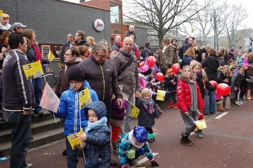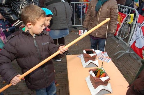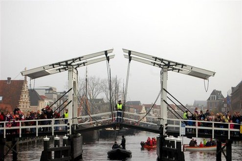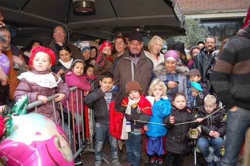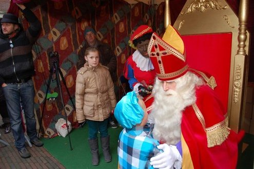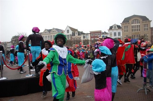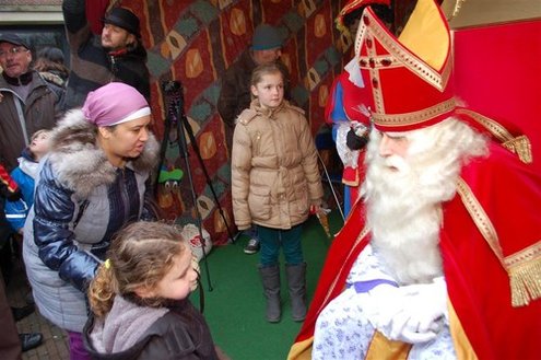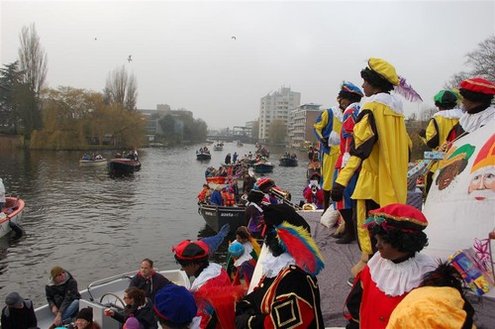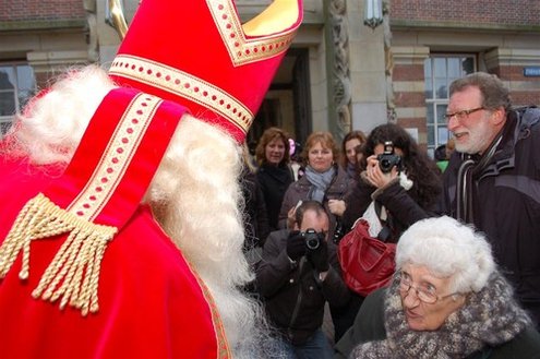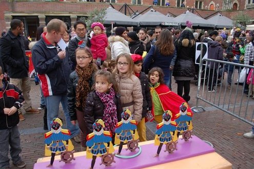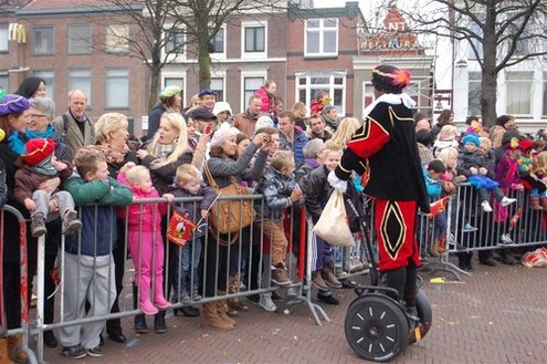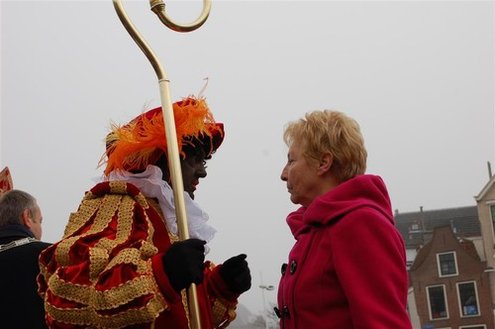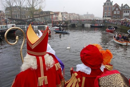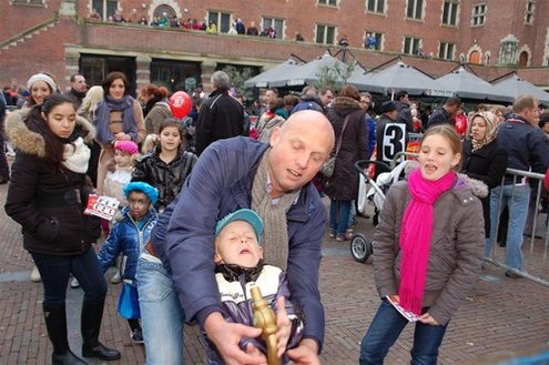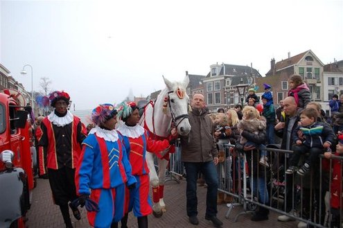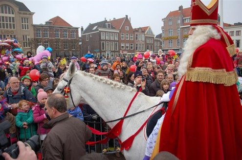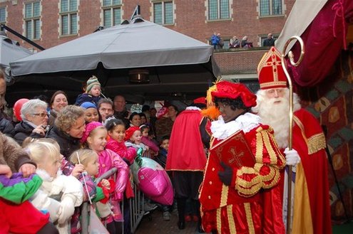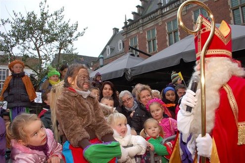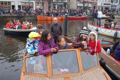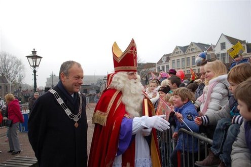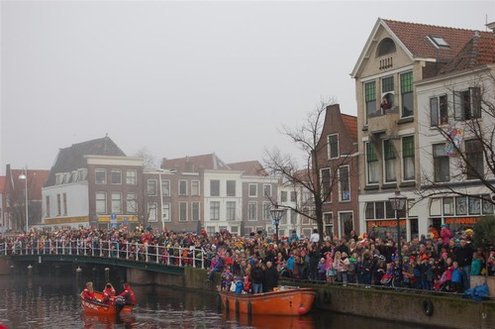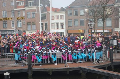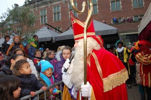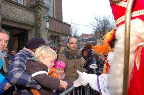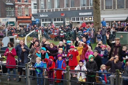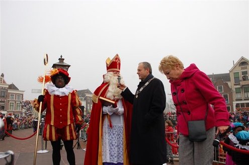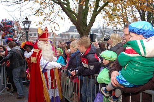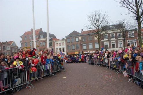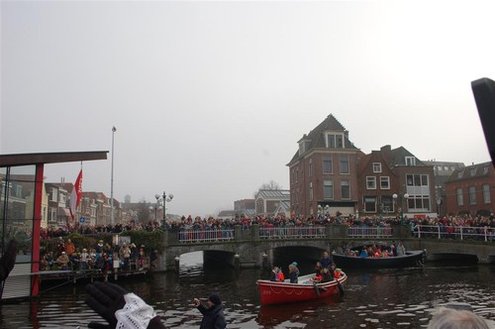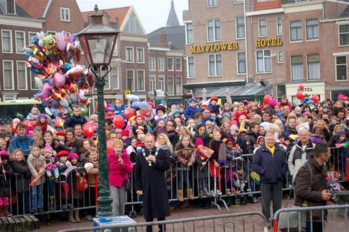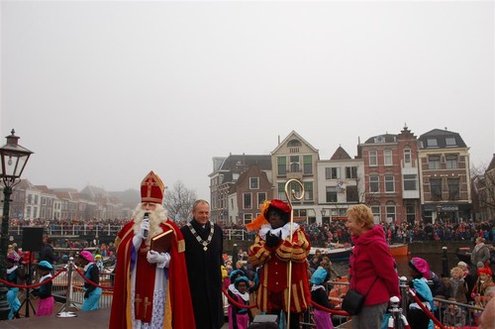 IJzige kou en mist ten spijt werd Sinterklaas zaterdag feestelijk ingehaald in Leiden. Op de Beestenmarkt en langs de route stonden rond de 10.000 kinderen met hun ouders om Sinterklaas en zijn Zwarte Pieten toe te zingen en pepernoten te vangen. Om 12.00 uur werd Sinterklaas op de Beestenmarkt ontvangen door burgemeester Henry Lenferink en gastvrouw Monique Lasschuyt. Daarna gingen de Sint en zijn Pieten in optocht richting het Stadhuisplein waar alle kinderen Sinterklaas een handje konden geven en een cadeautje kregen.