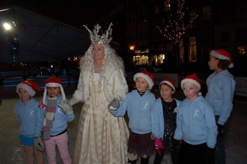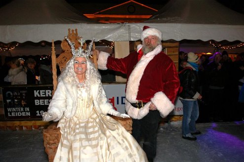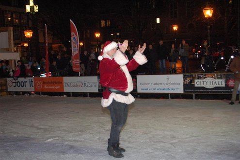 Een stukje verderop werd daarna ook de ijsbaan op de Nieuwe Rijn feestelijk geopend. Alle Leidenaren kunnen er sinds vrijdagavond tot en met 6 januari 2013 schaatsen.