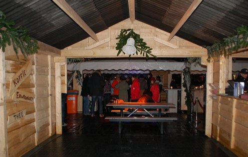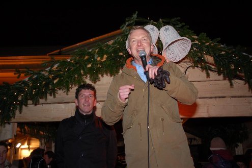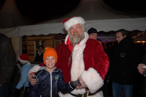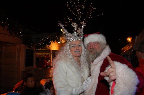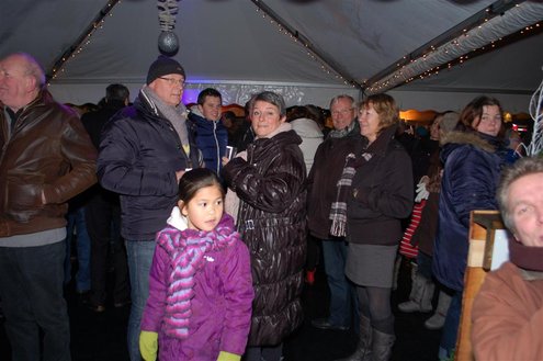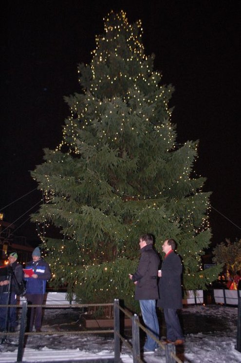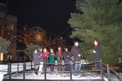 De kerstboom werd ontstoken door wethouder Pieter van Woensel en Erwin Roodhart (foto: Emile van Aelst).